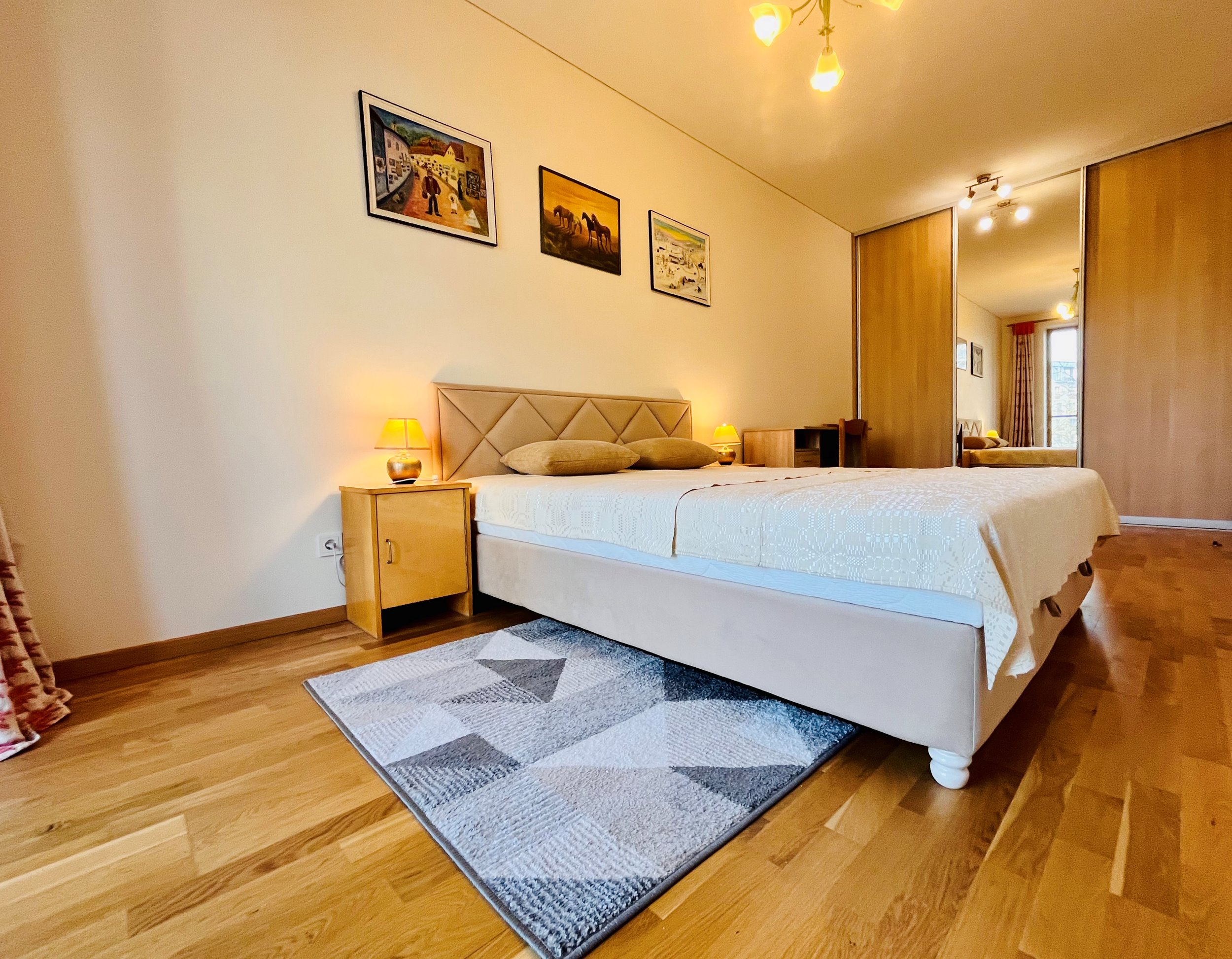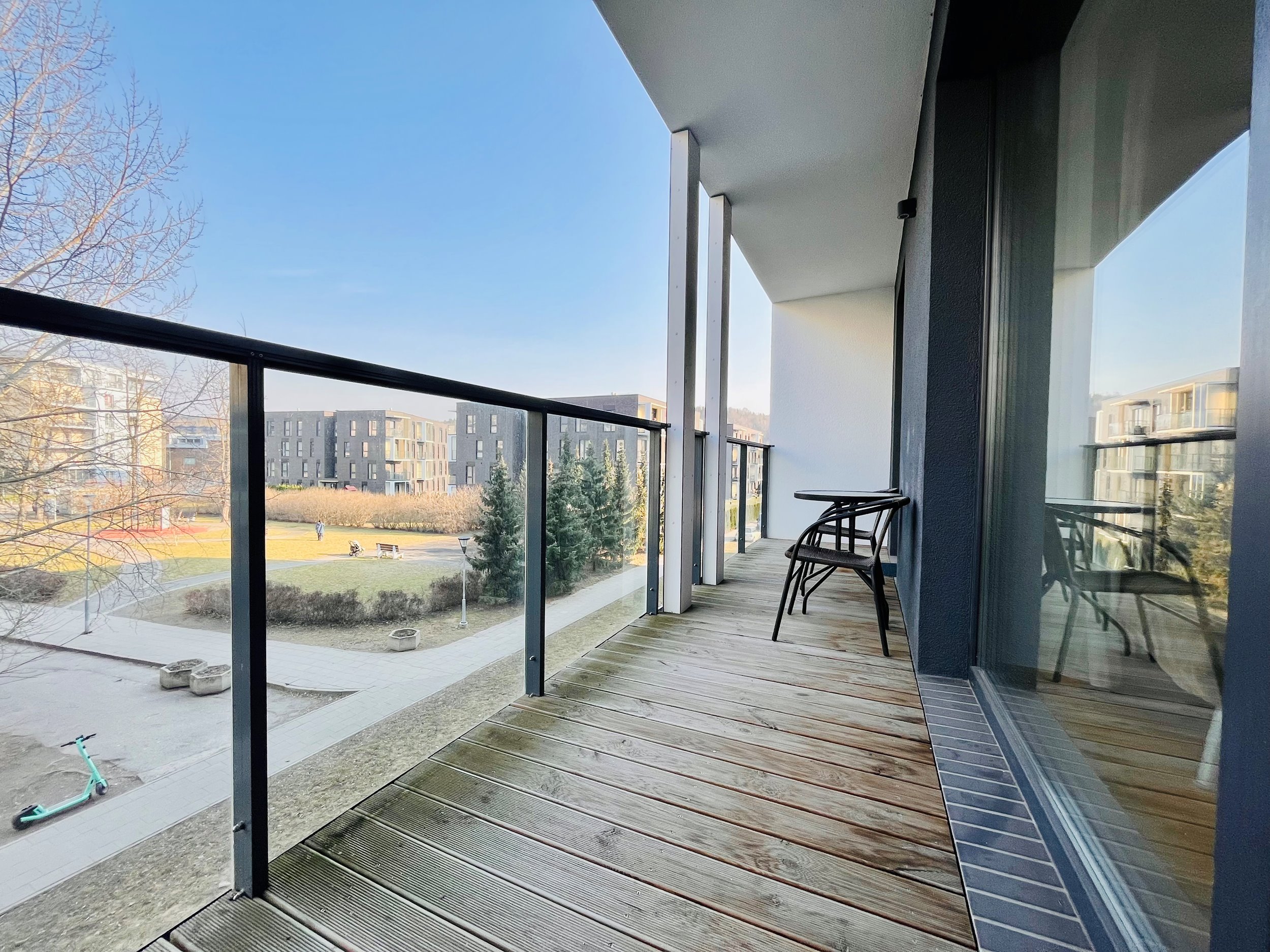 - Erdvus balkonas, kuris jungia svetainę ir miegamąjį – puiki vieta poilsiui