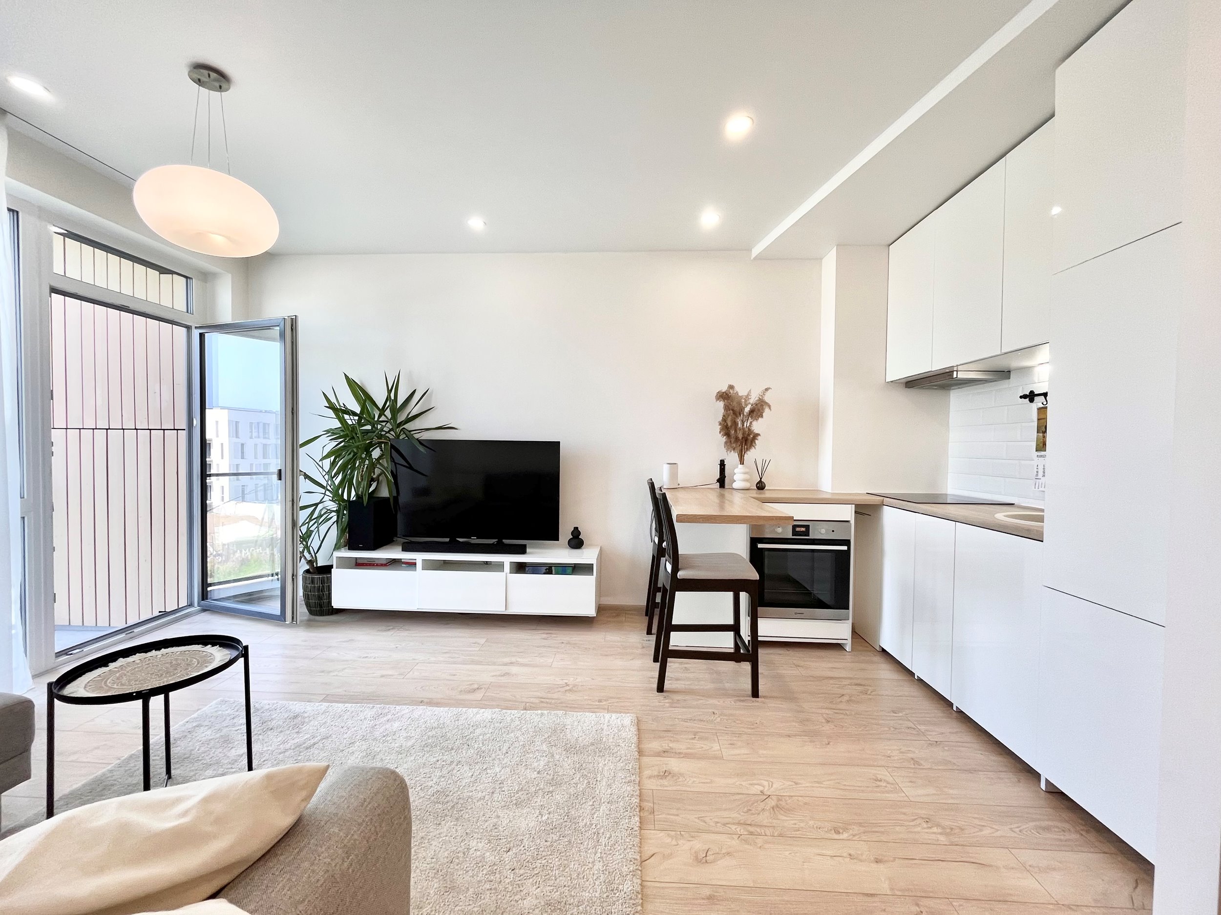 Nuomojamas šiuolaikiškai įrengtas, 2022 m. statybos 2 kambarių butas Pilaitėje. Patogus išplanavimas, moderni aplinka ir žalia kaimynystė – puikus pasirinkimas tiek porai, tiek vienam žmogui ar mažai šeimai.