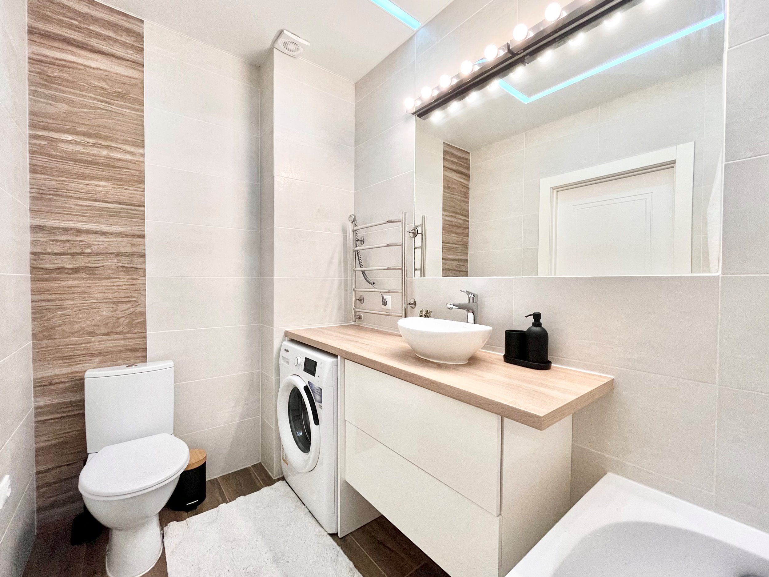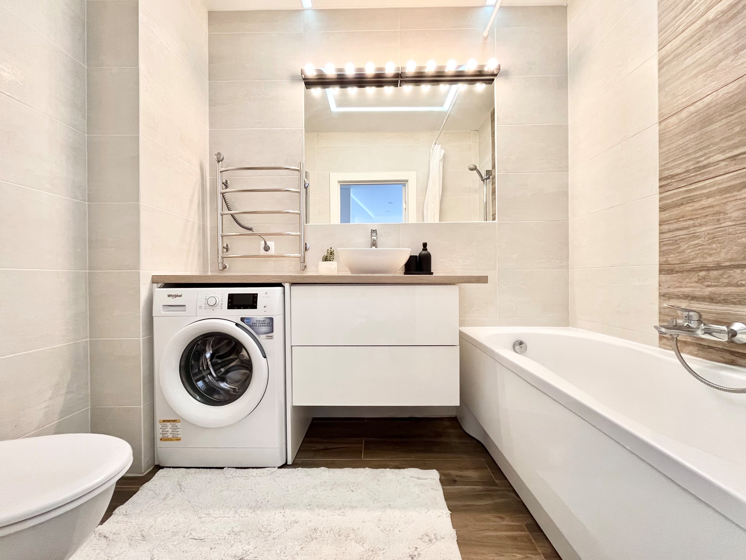 • Įrengta skalbimo mašina