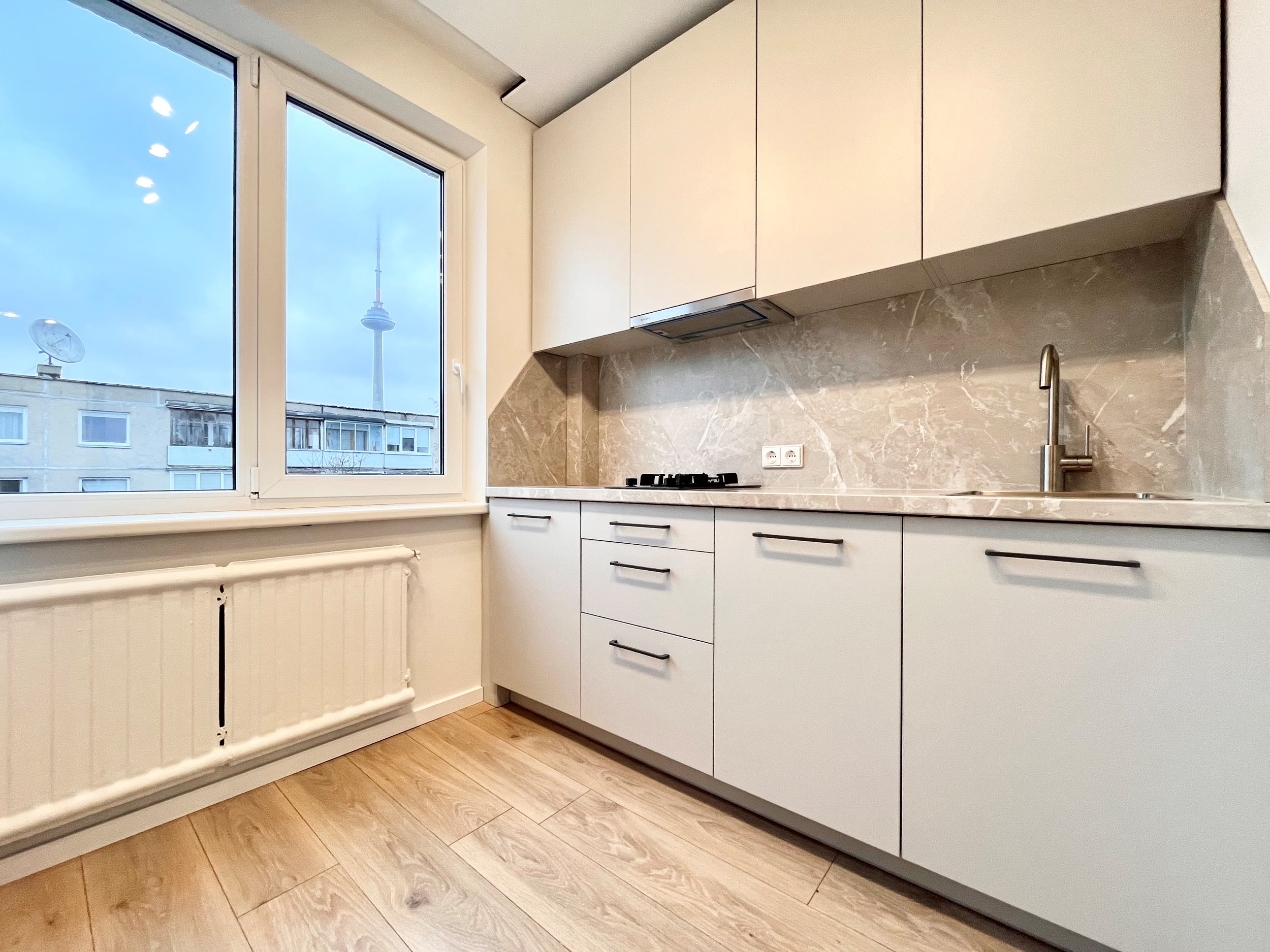 Pro langus atsiveria vaizdas į Vilniaus televizijos bokštą, kuris suteikia tiek jaukumo, tiek išskirtinumo