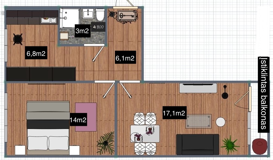 Parduodamas šiuolaikiškai įrengtas 2 kambarių butas (47 m²)