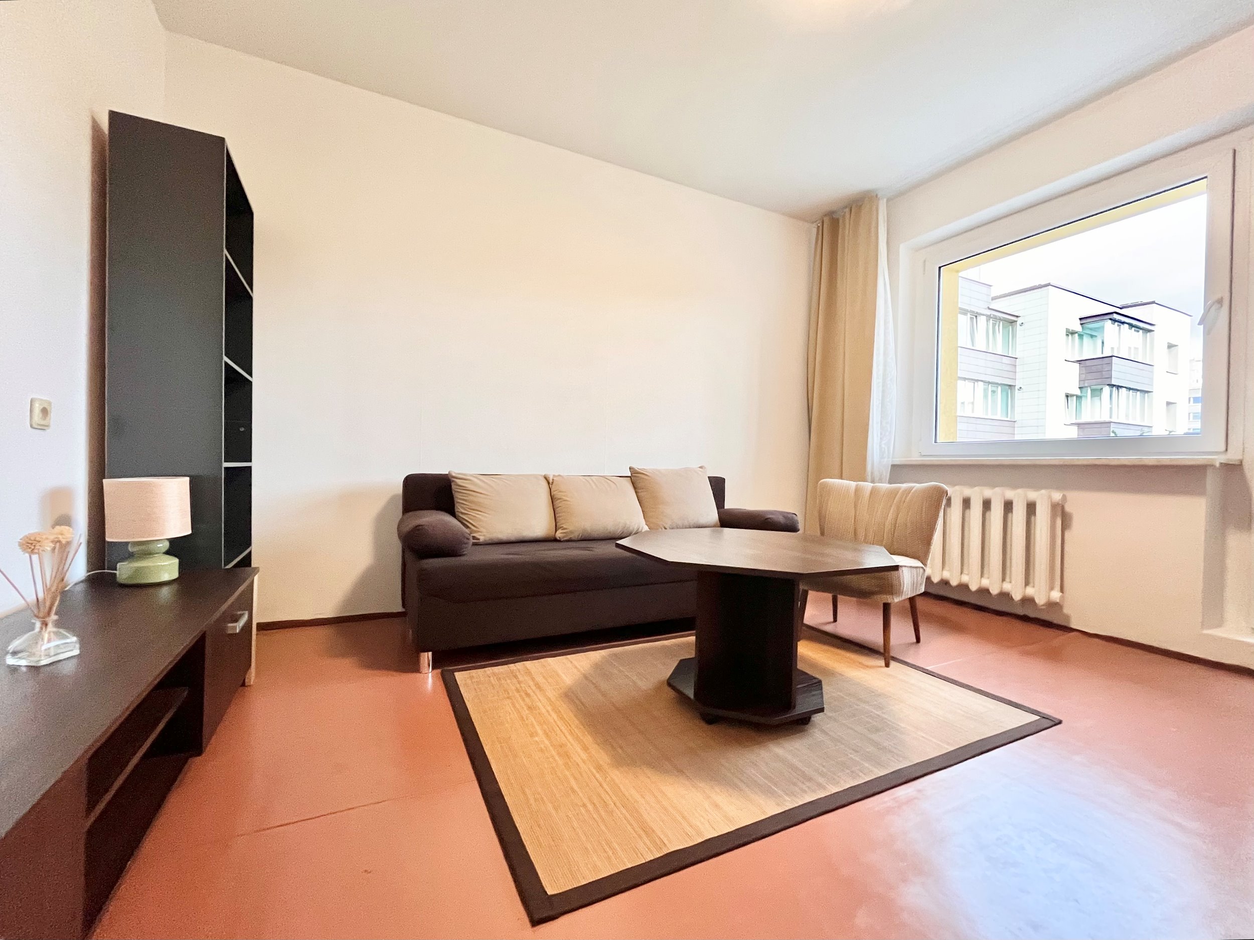 Nuomojamas tvarkingas 48 kv. m butas trečiame aukšte iš aštuonių, name su liftu. Pastatas renovuotas 2017 metais – šiltas, ekonomiškas ir puikiai prižiūrimas. Butas šviesus, jaukus, su įstiklinta pereinama lodžija, vonia ir skalbimo mašina.
