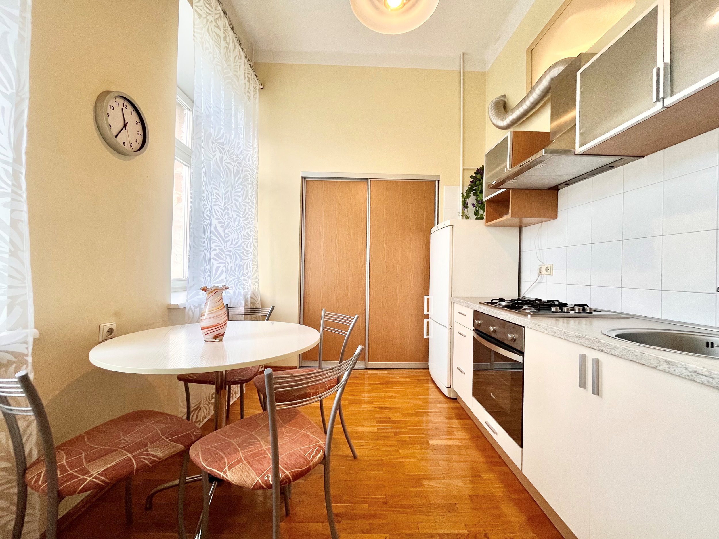 Nuomojamas 36 m² butas, esantis 3 aukšte iš 5, pačioje sostinės širdyje. Namas renovuotas 2000 m., todėl bute jaučiasi solidi klasika ir šiuolaikinis komfortas.