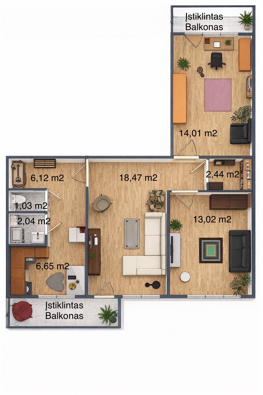 • Plotas: 64,00m2