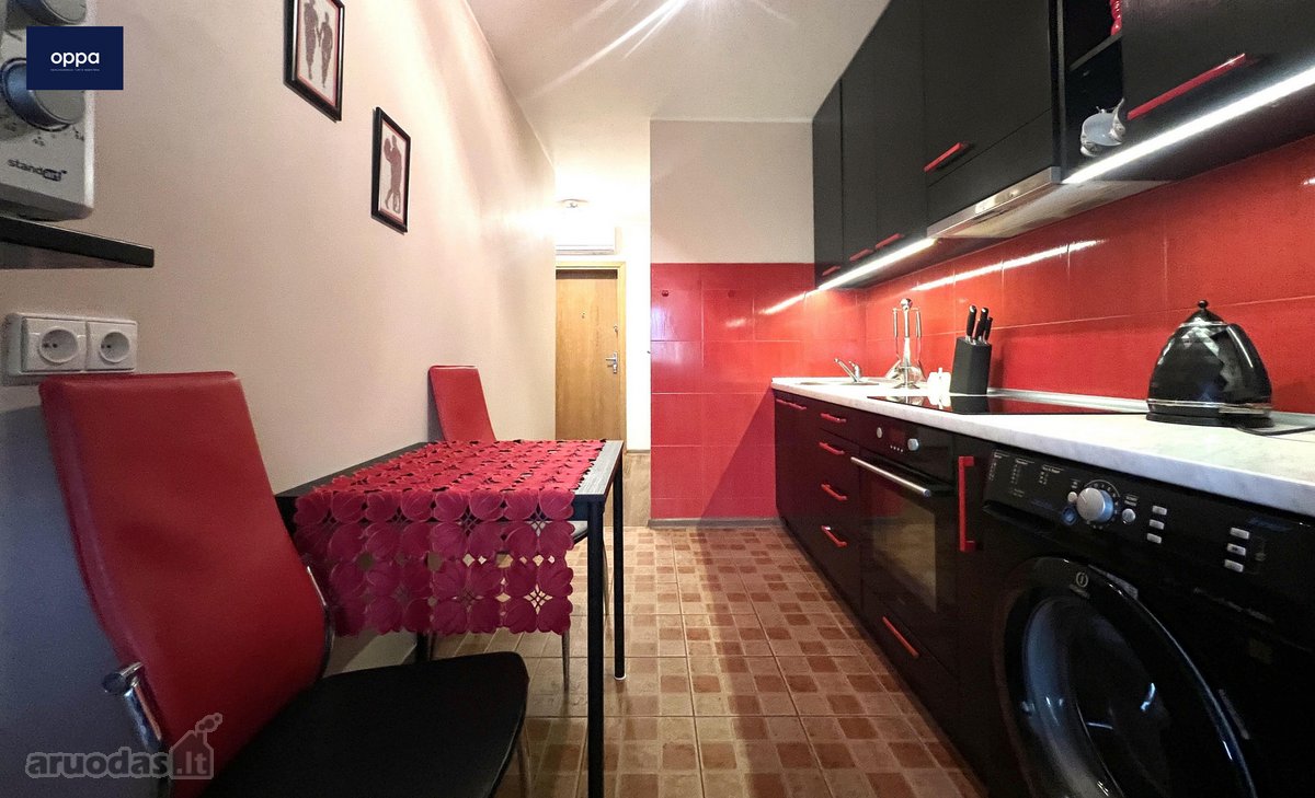 - Nuomojamas su visais baldais ir buitine technika, kaitlentė, orkaitė, šaldytuvas, skalbimo mašina, kondicionieriaus.