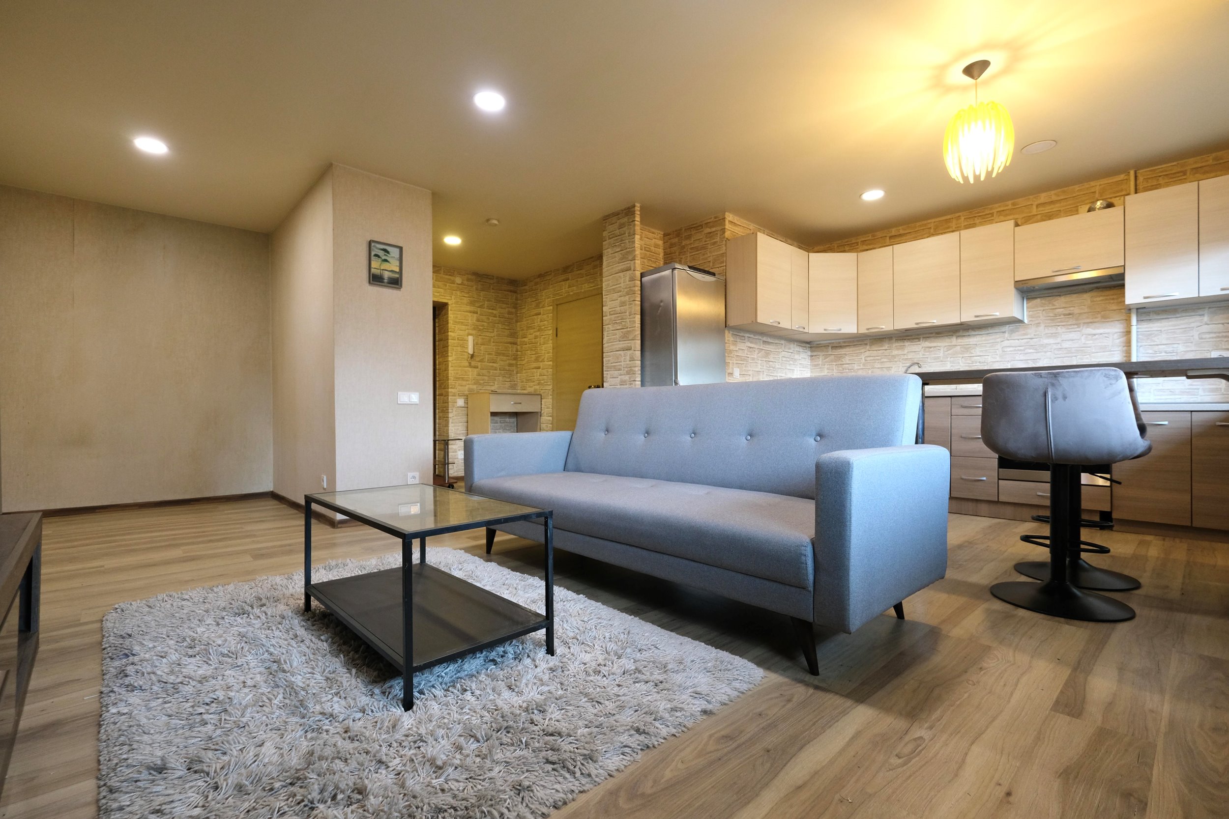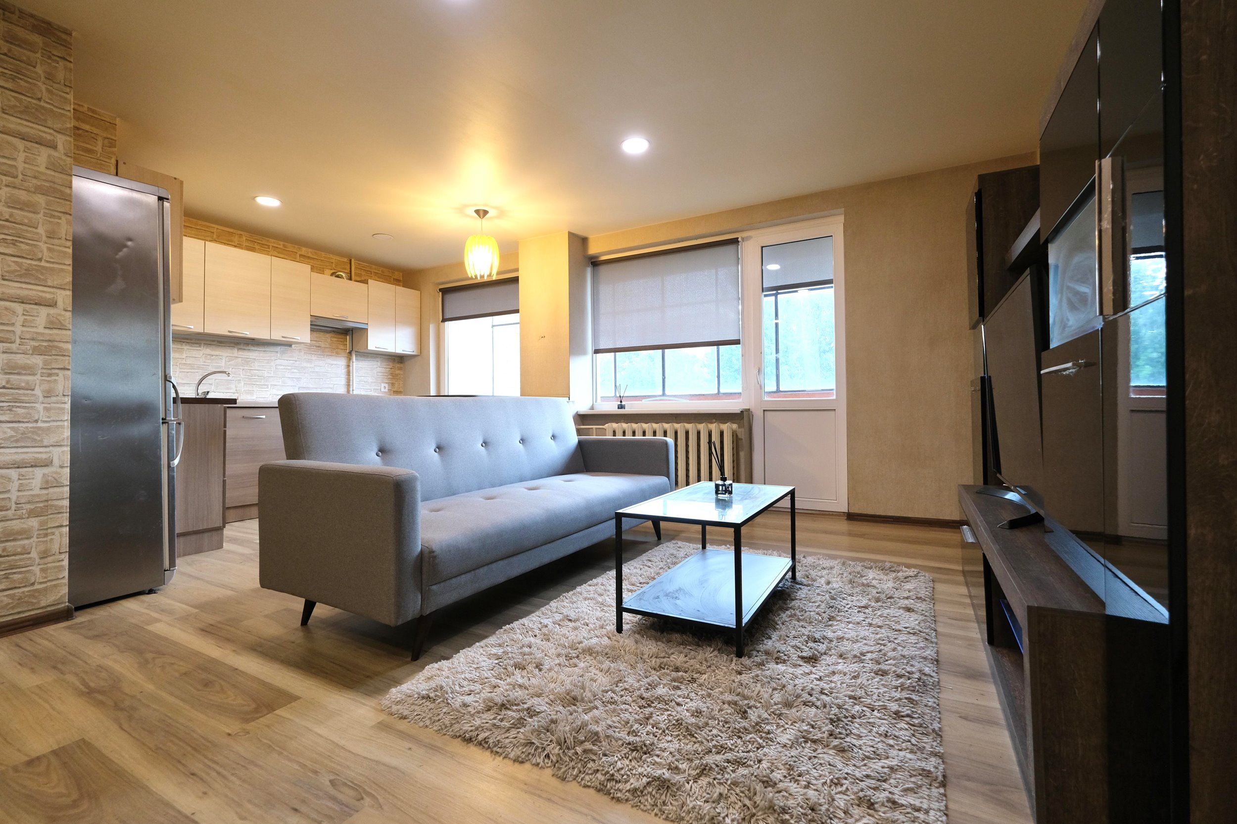 - Svetainė sujungta kartu su virtuvės zona;
