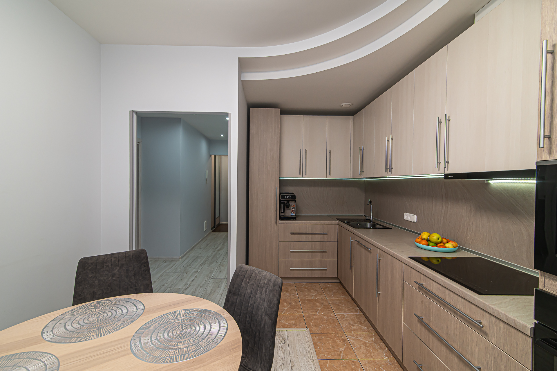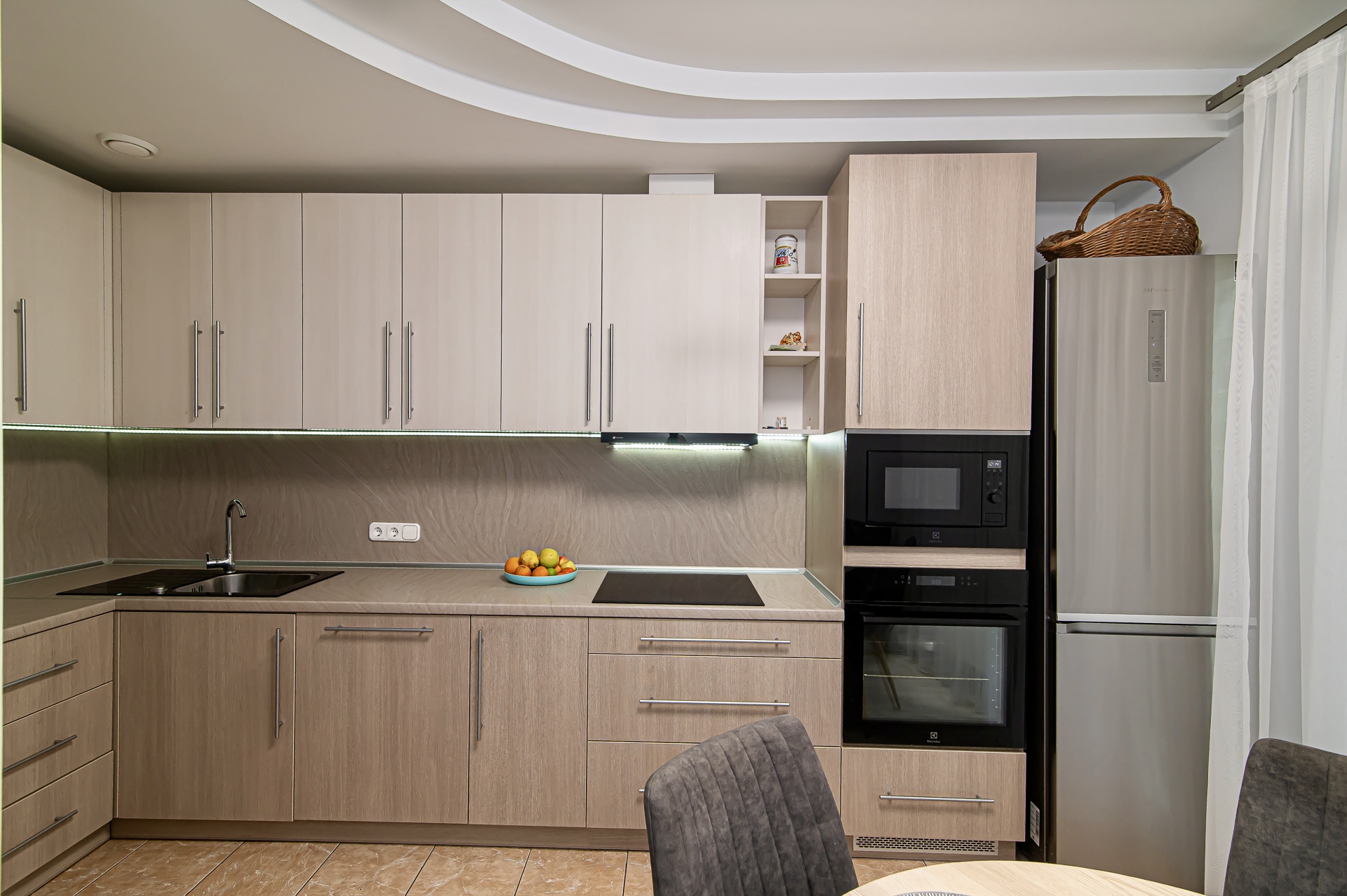 ✔️ Įmontuota buitinė technika (šaldytuvas, orkaitė, kaitlentė mikrobangų krosnelė, kavos aparatas, indaplovė ir kt.)