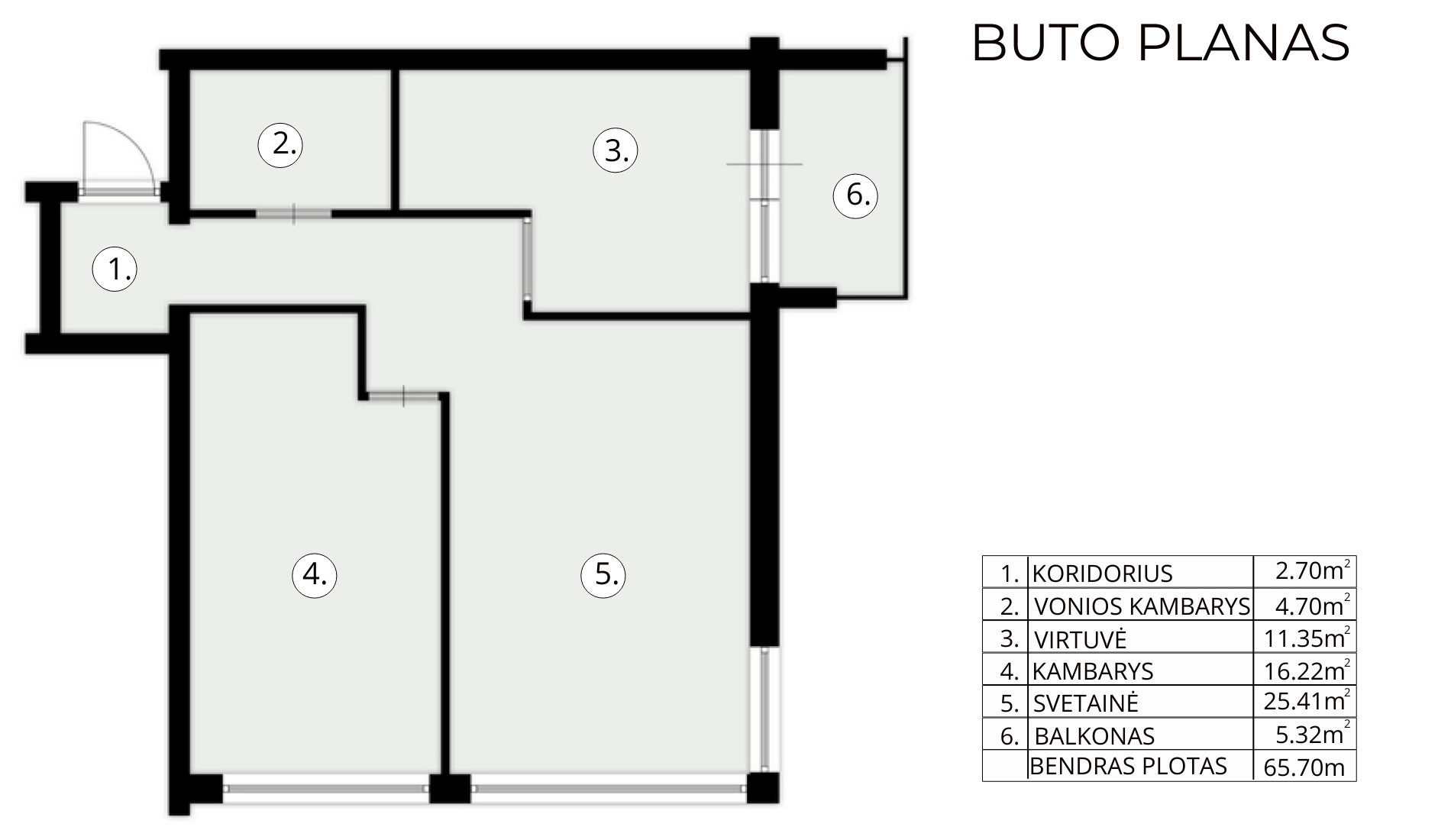 Bendras plotas - 65,70 kv.m.;