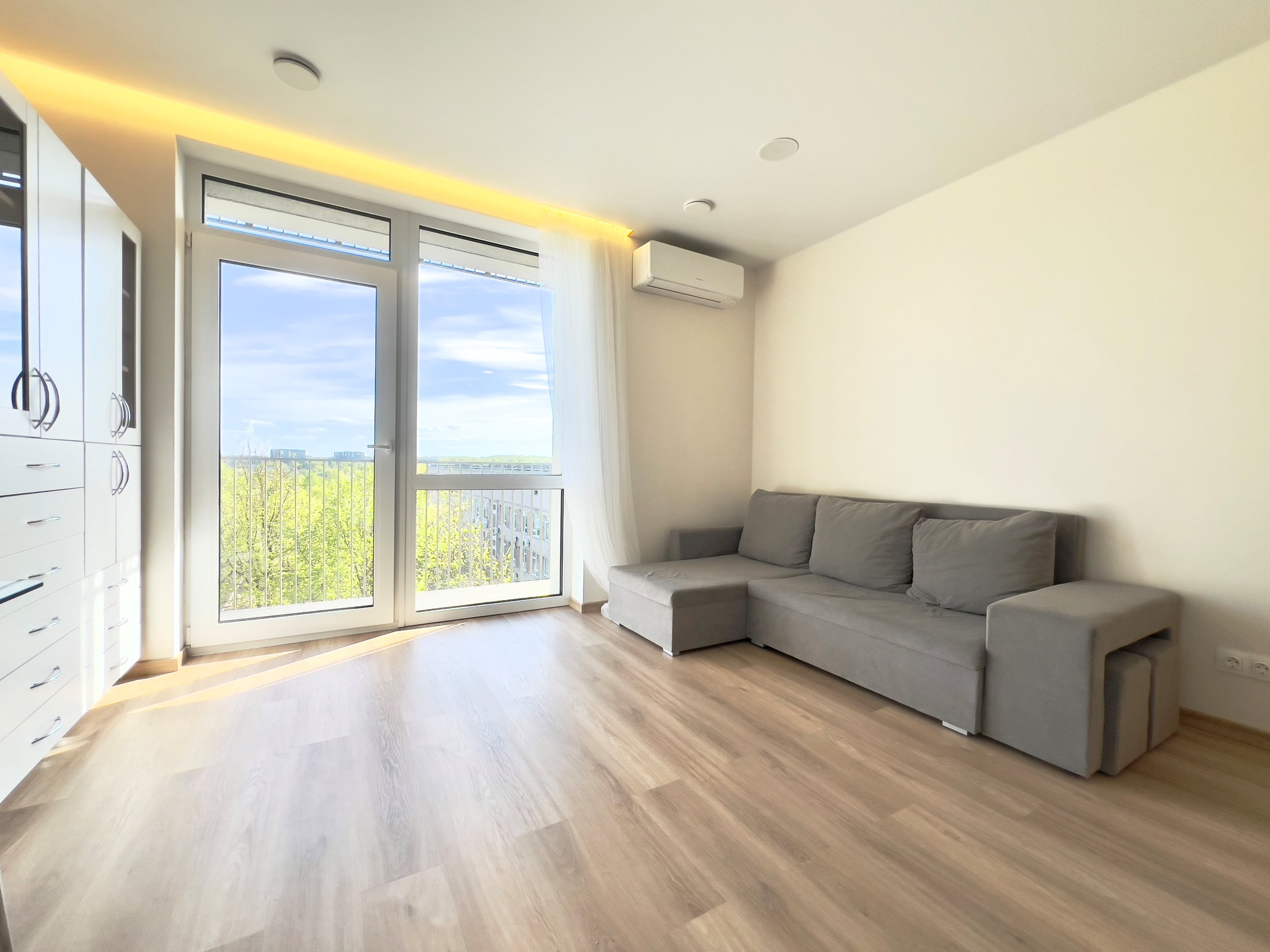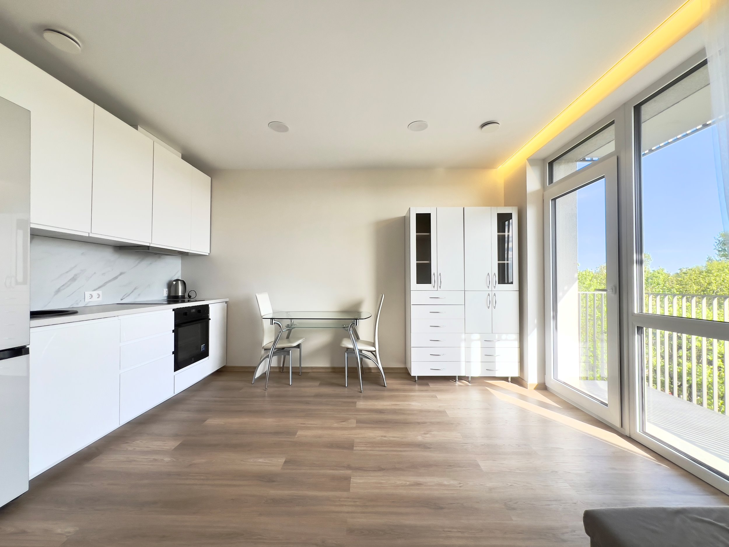 - Panoraminiai vitrininiai langai, į butą patenka daug natūralios šviesos;