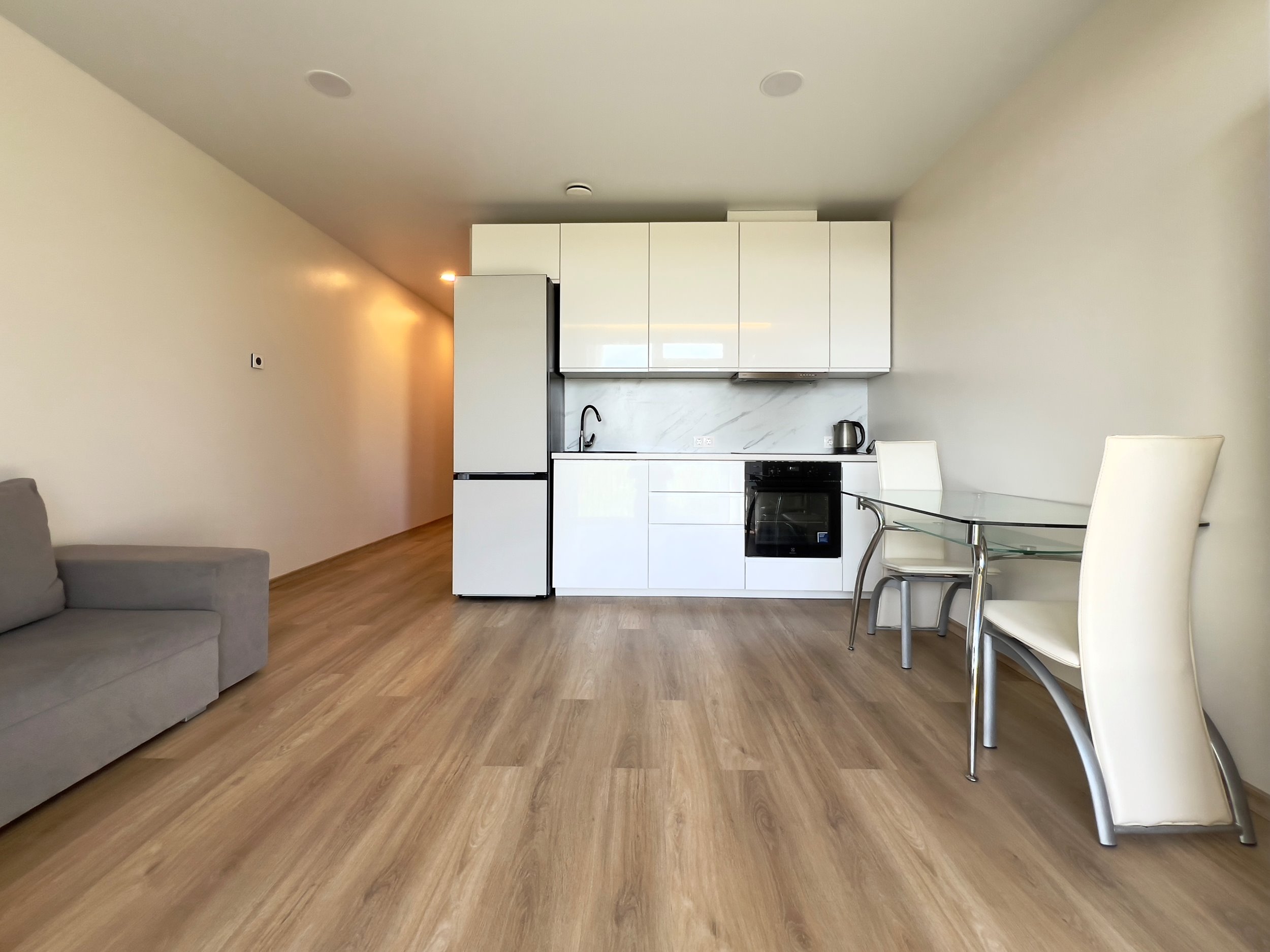 - Svetainė sujungta kartu su virtuvės zona;