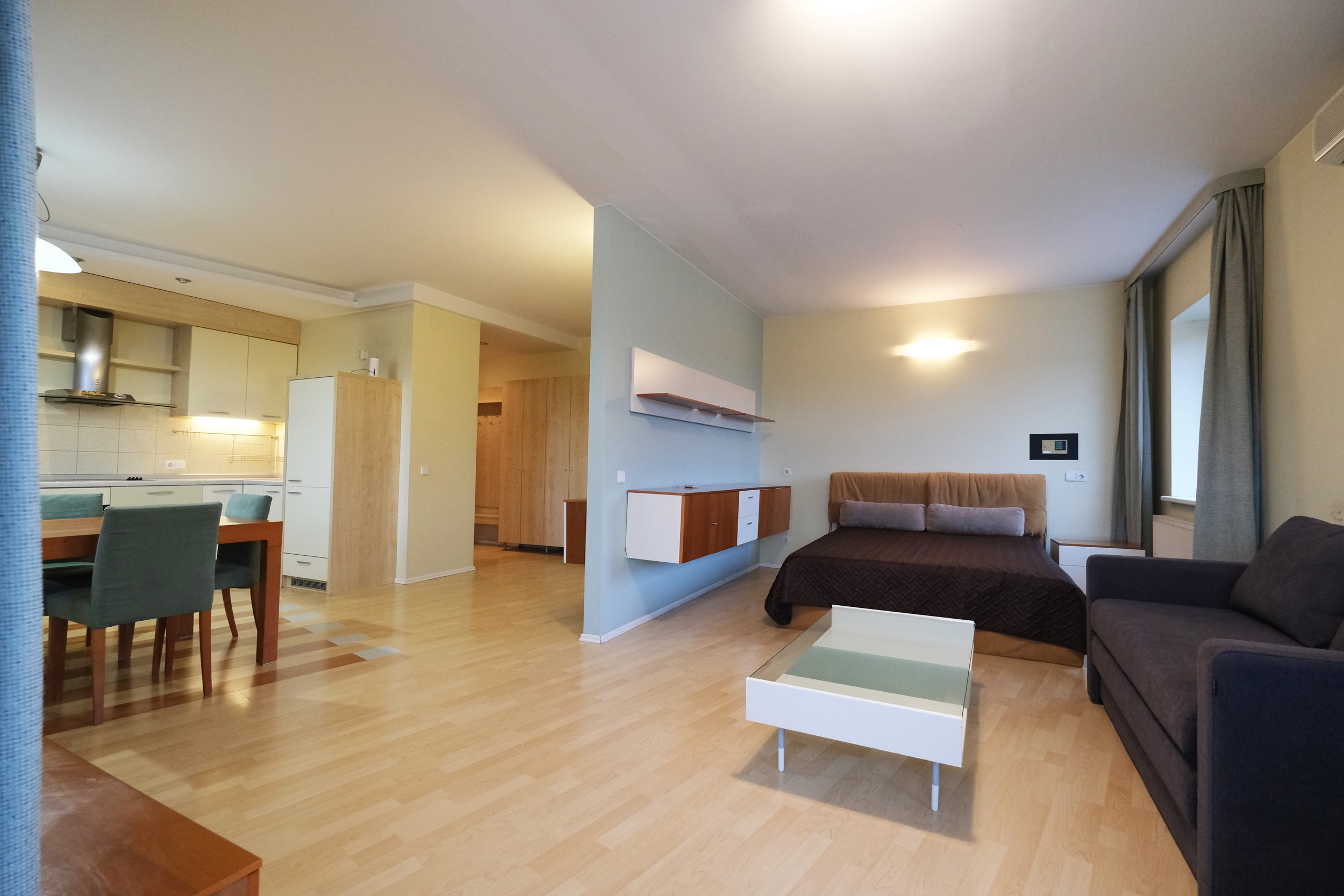 Bute yra visi reikalingiausi baldai, sofa-lova, skalbimo mašina, šaldytuvas su šaldikliu, viryklė, indaplovė ir t.t.