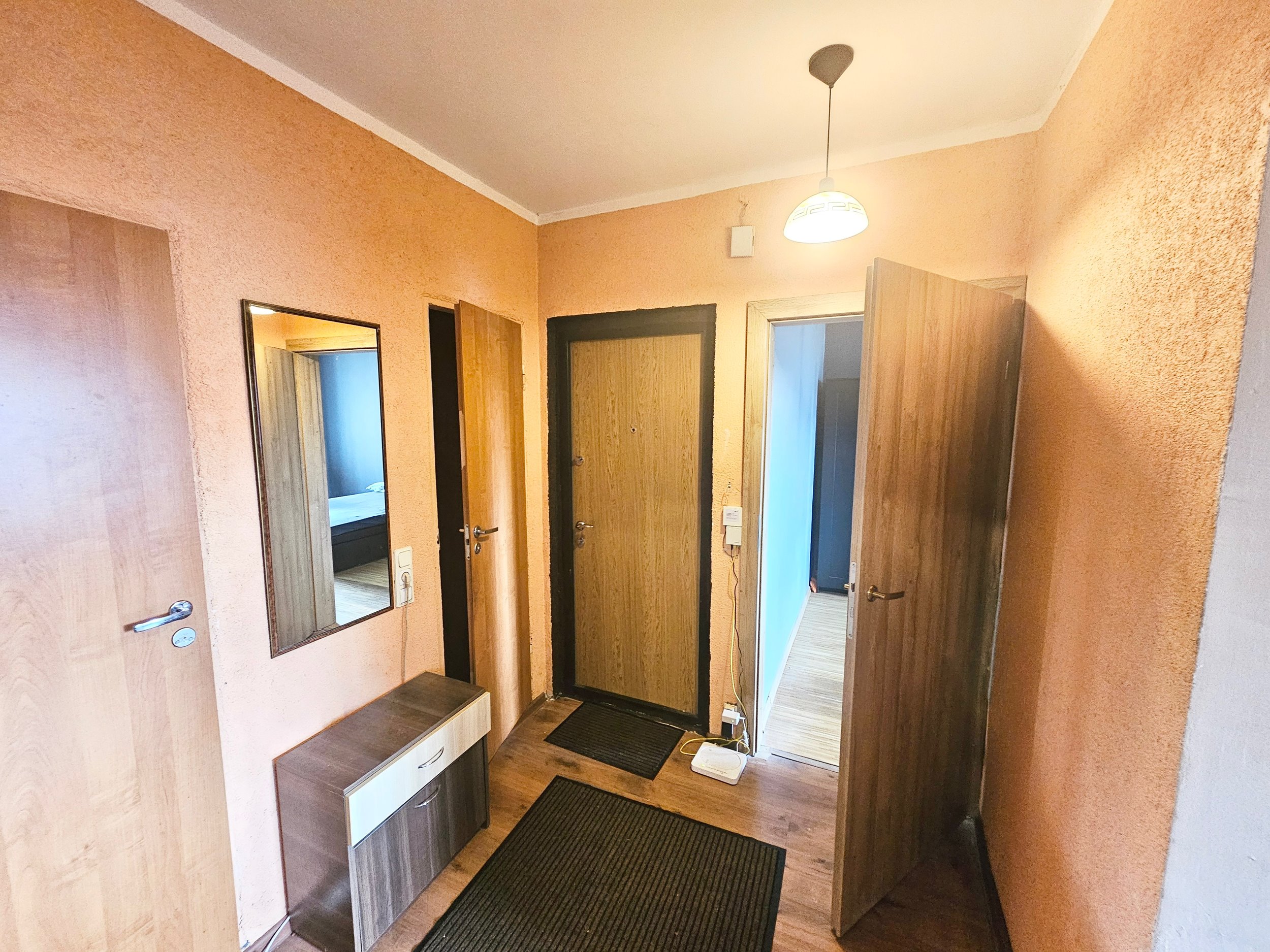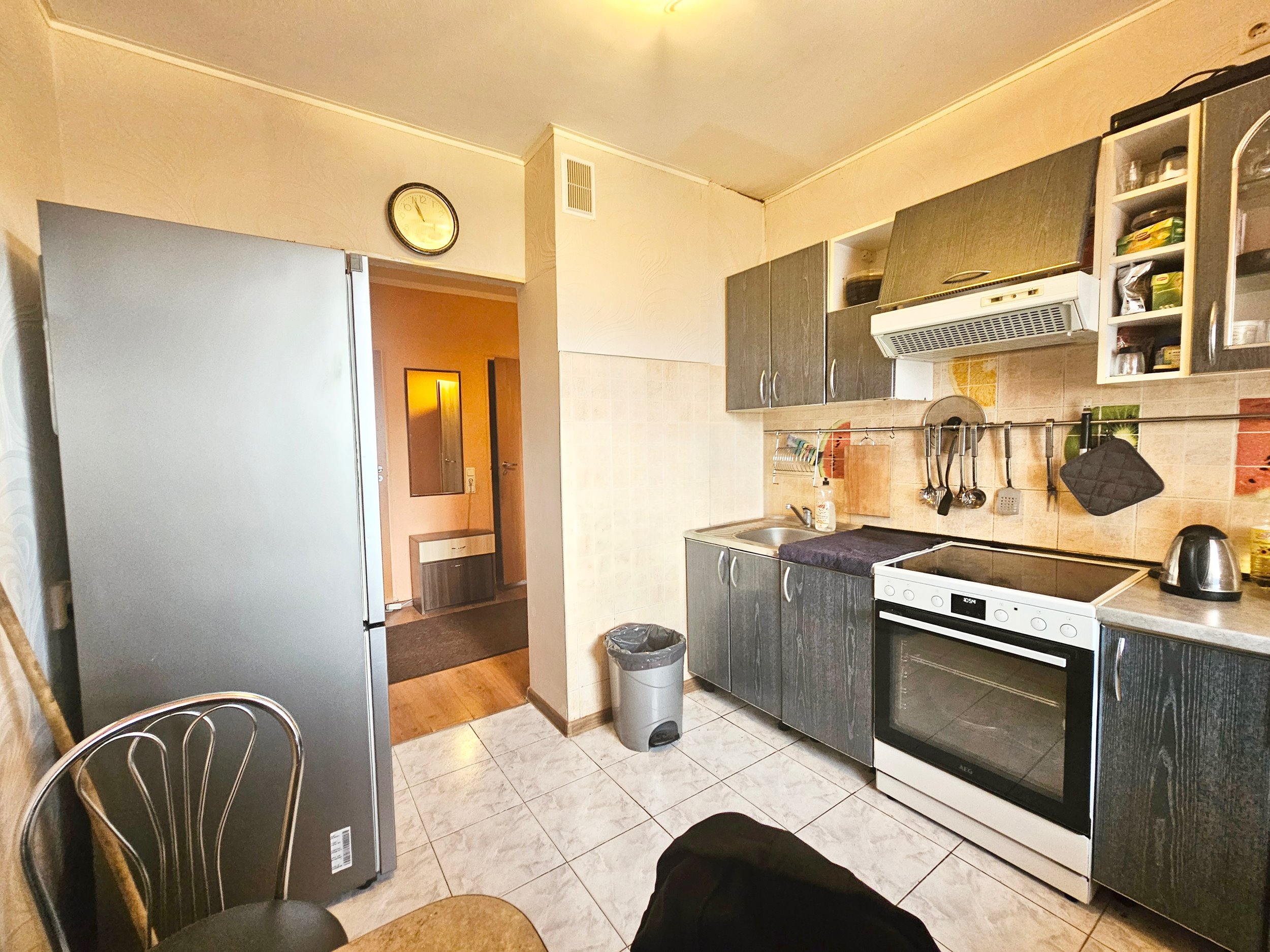 Bute yra visi reikalingi baldai, sofa-lova, dvigulė lova miegamajame, šaldytuvas su šaldikliu, viryklė, skalbimo mašina.