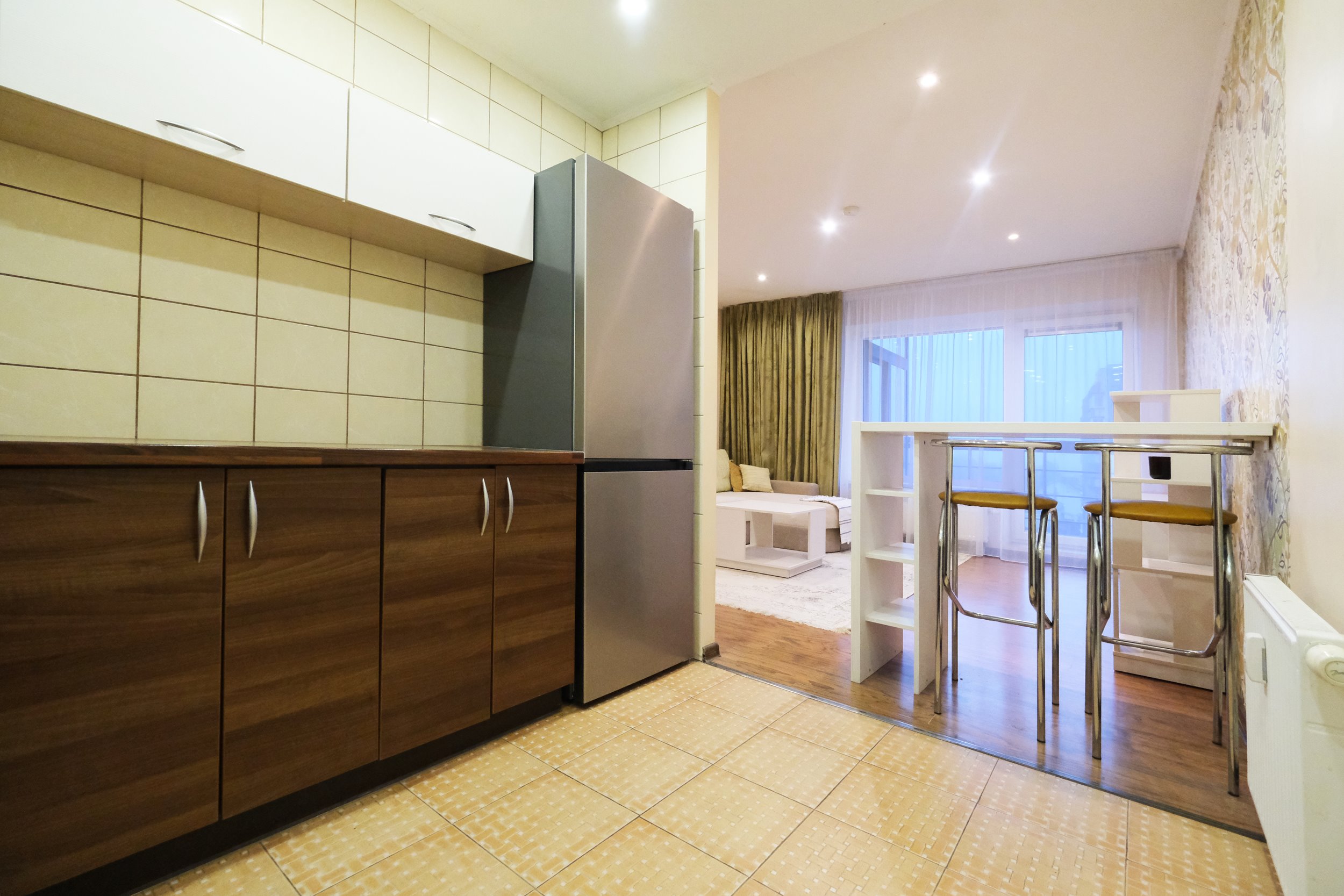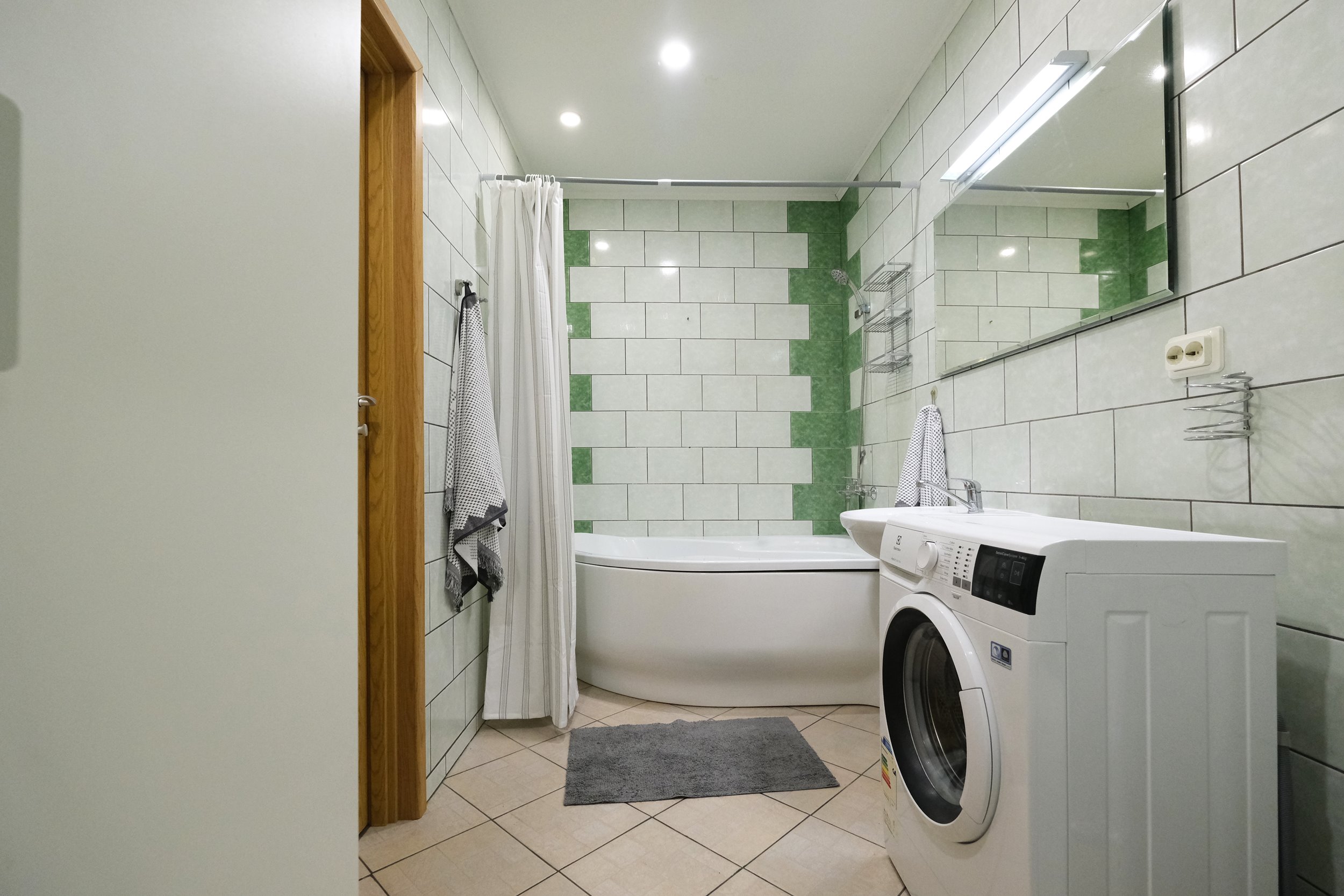 Bute yra visi reikalingiausi baldai, sofa-lova, skalbimo mašina, šaldytuvas su šaldikliu, viryklė ir t.t.