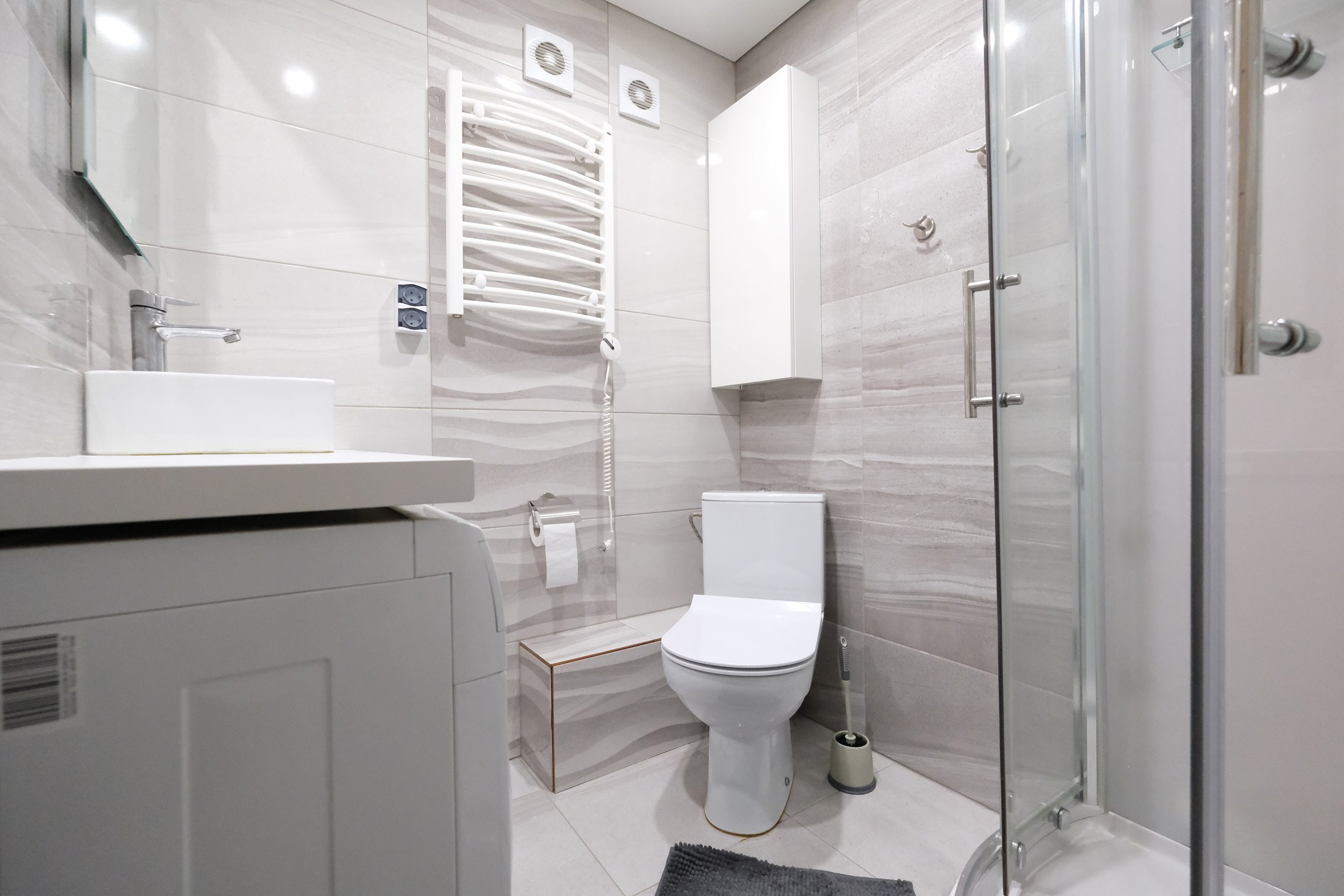 Bute yra visi reikalingiausi baldai: sofa, lova, skalbimo mašina, šaldytuvas su šaldikliu, kaitlentė ir t.t.