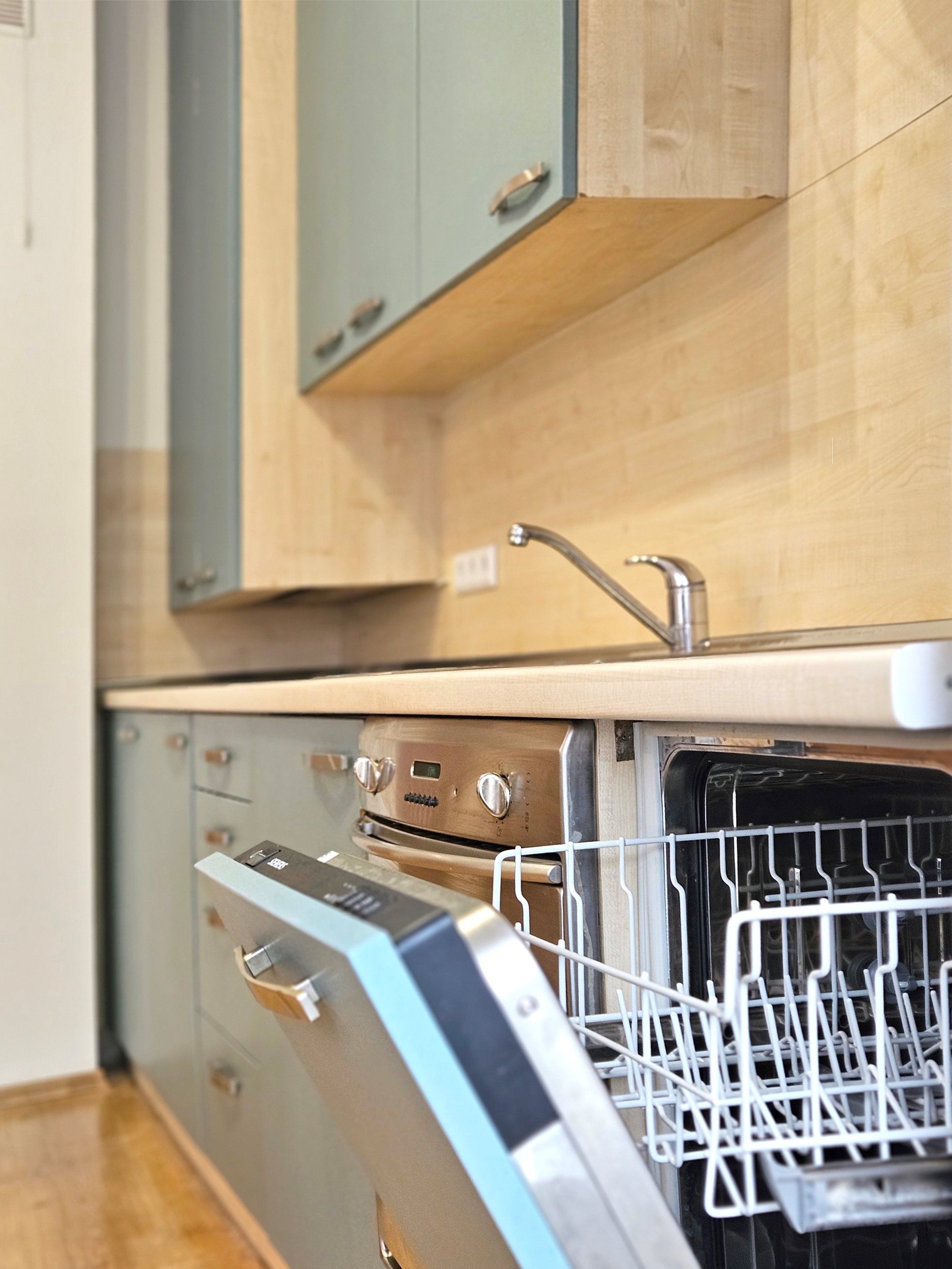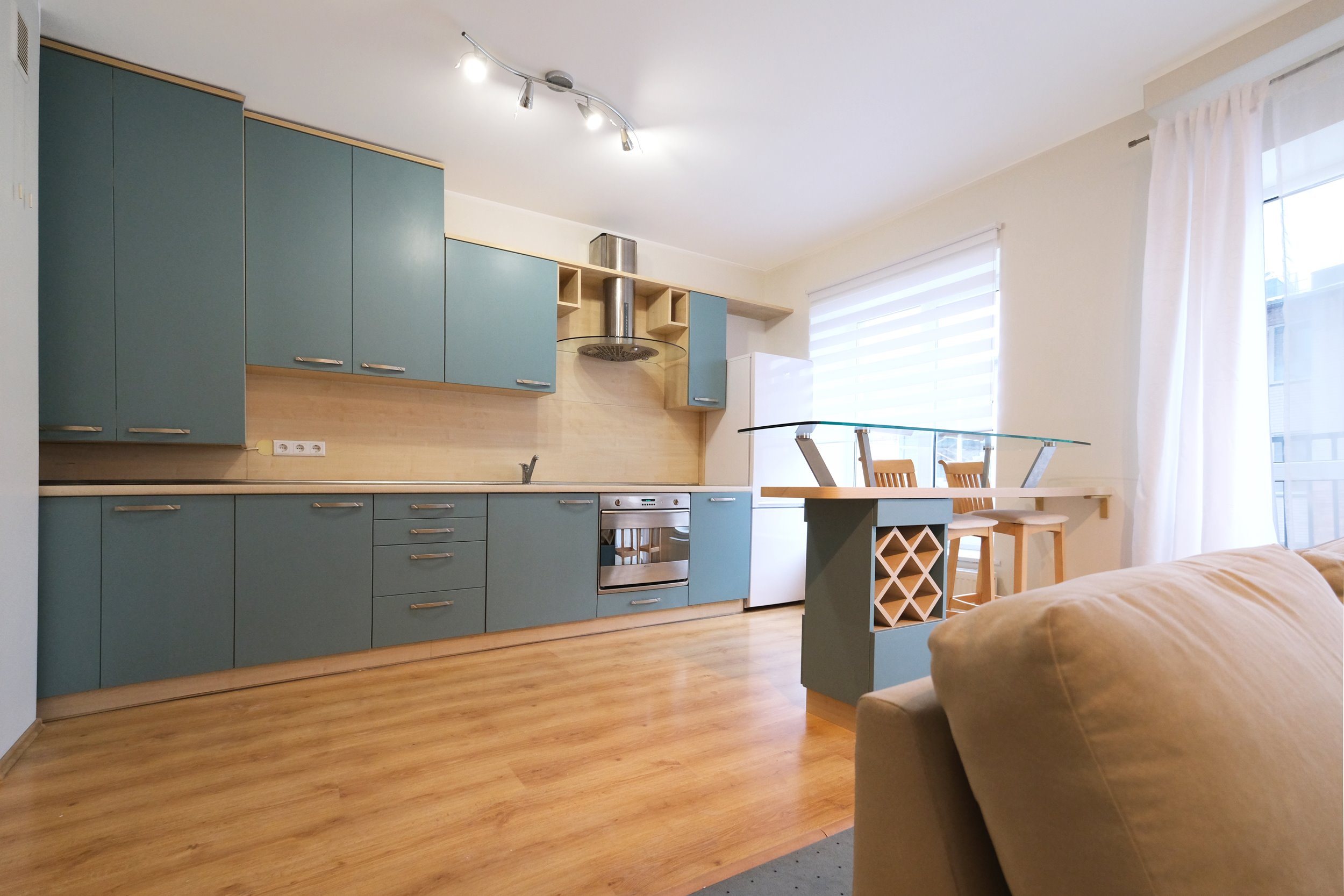 Bute yra visi reikalingiausi baldai, skalbimo mašina, šaldytuvas su šaldikliu, viryklė, indaplovė ir t.t.