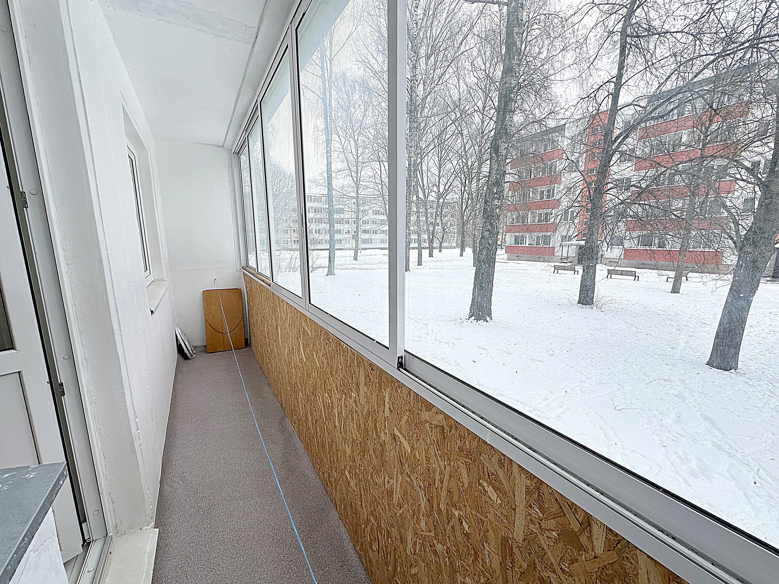 Bute šarvo durys. Yra įstiklintas balkonas.