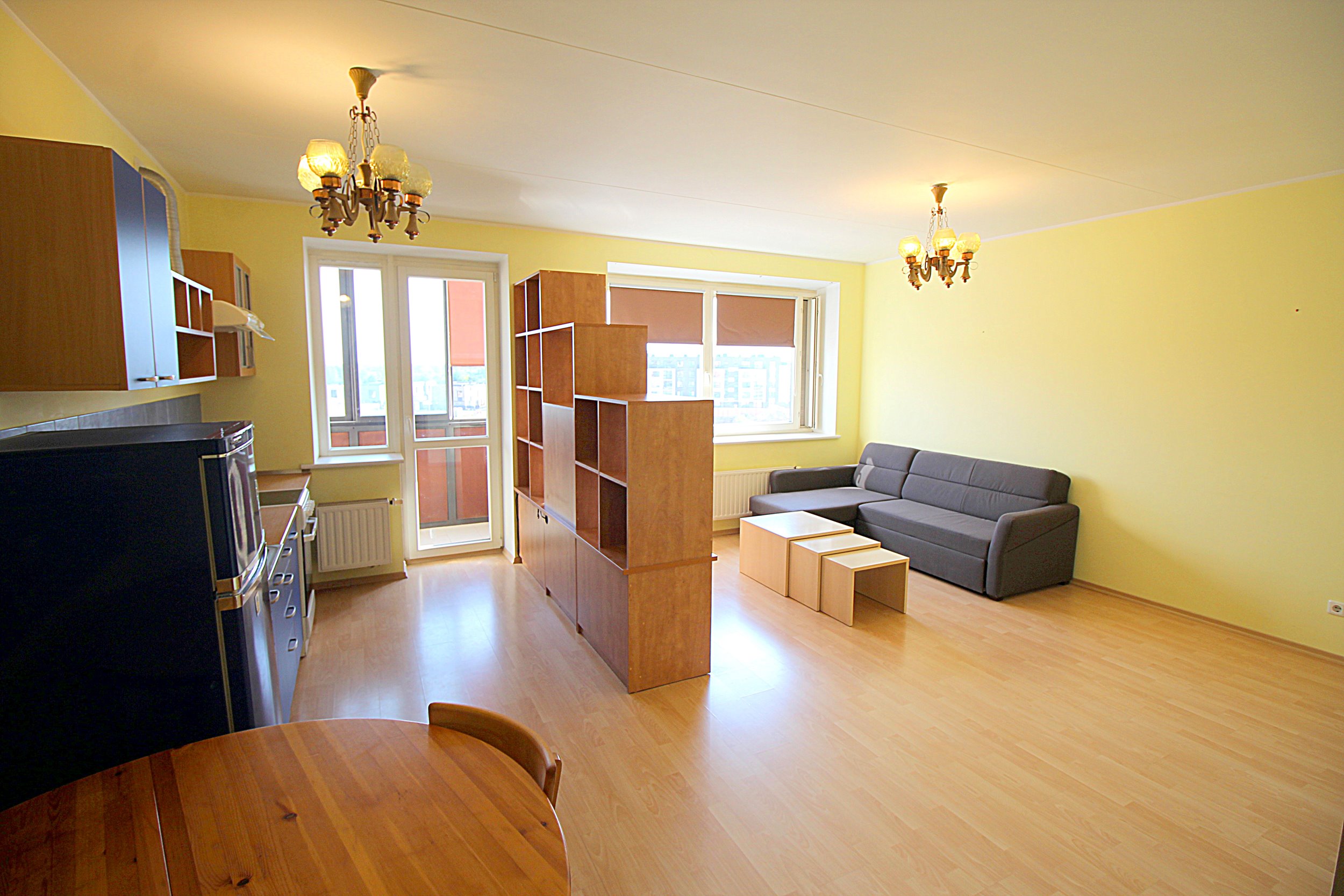 Vonia ir WC kartu. Įstiklintas balkonas. Gražus vaizdas pro langą. Netoliese autobuso stotelės, Maxima, Rimi. Šalia Gilužio ir Sportinis ežerai.
