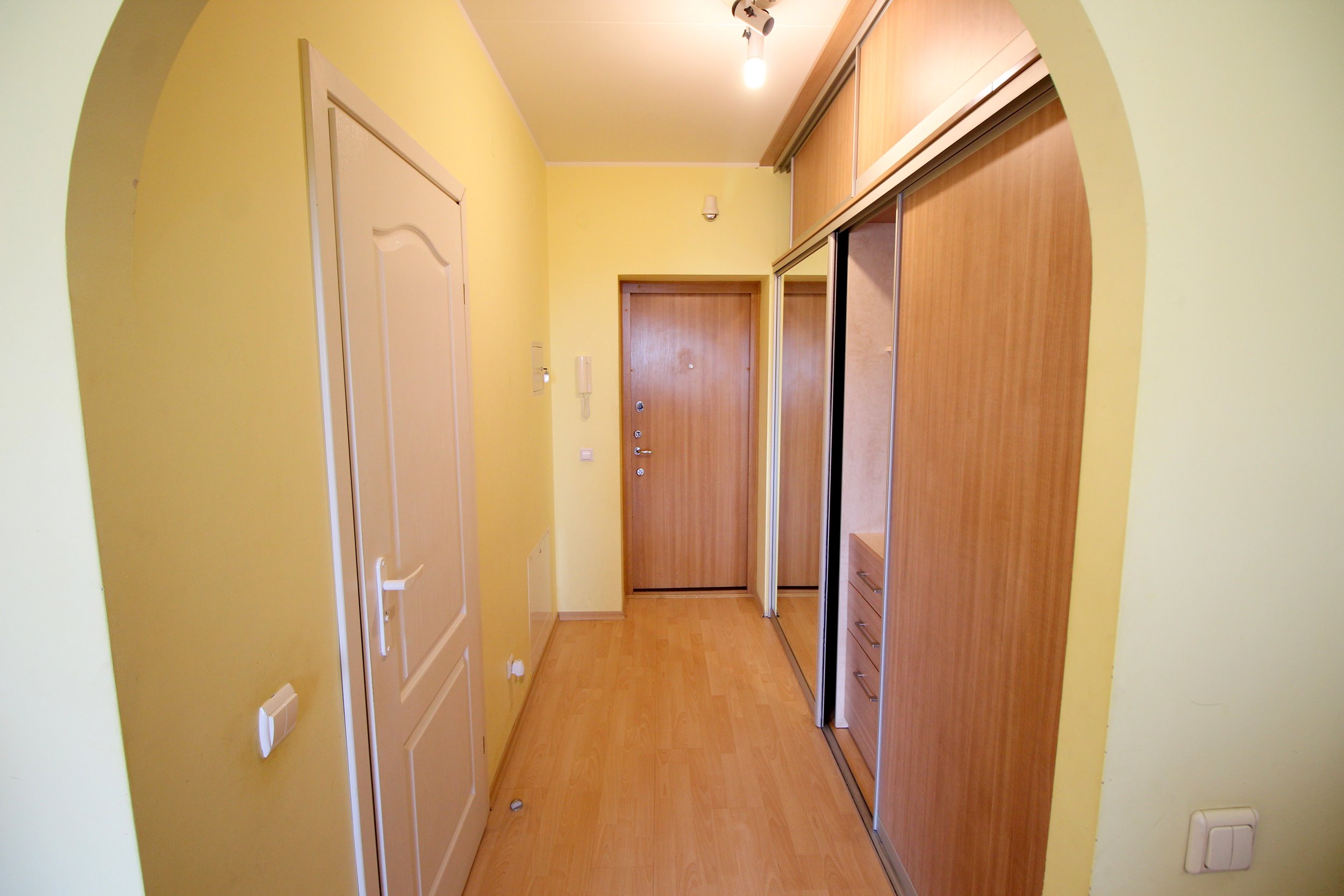 Naujas kampas su miego mechanizmu kambaryje. Talpi sieninė spinta koridoriuje.