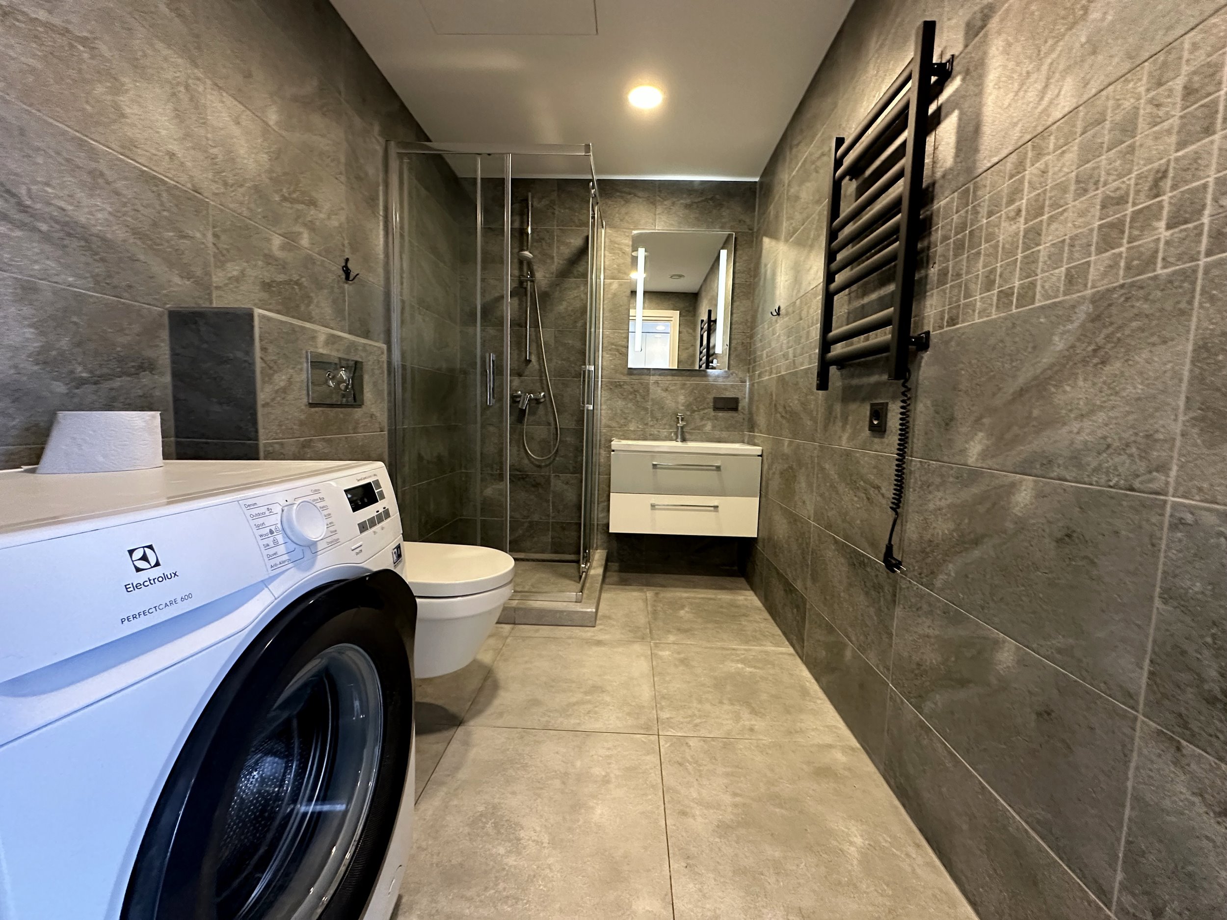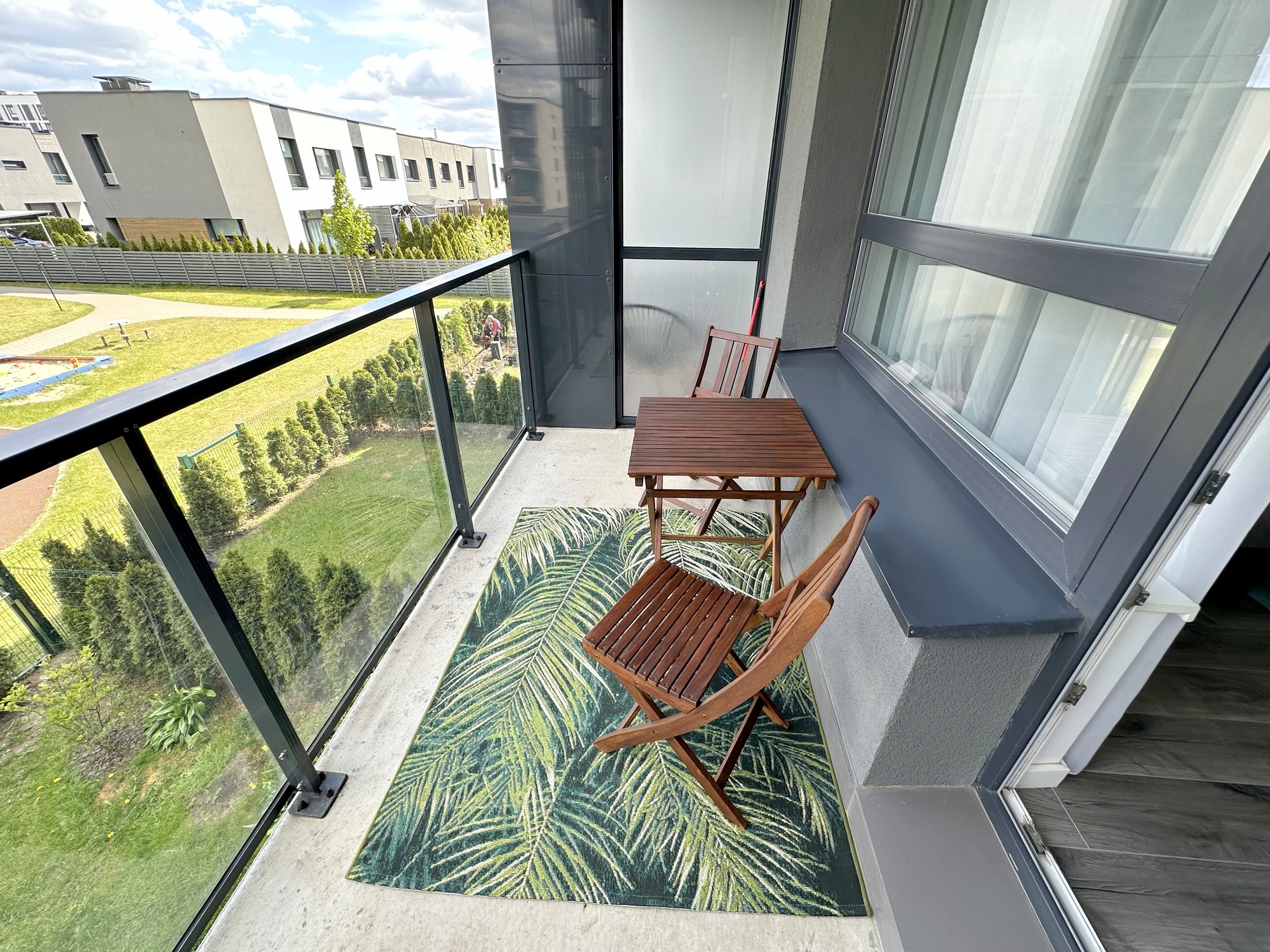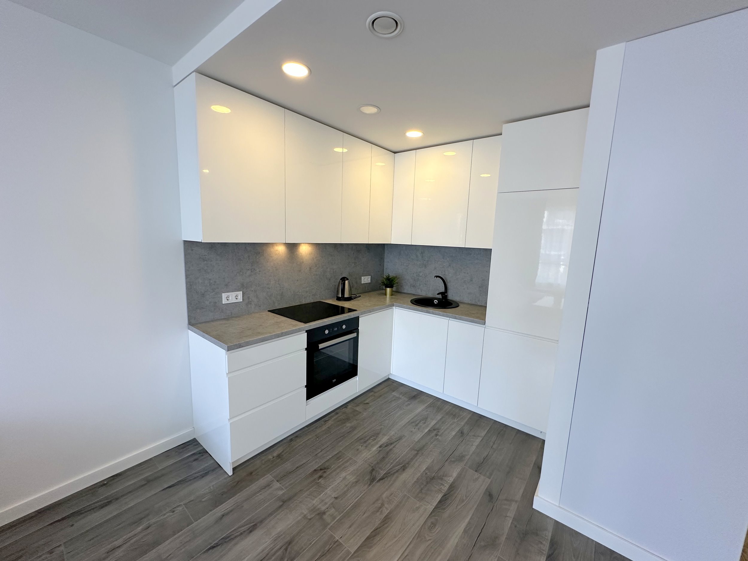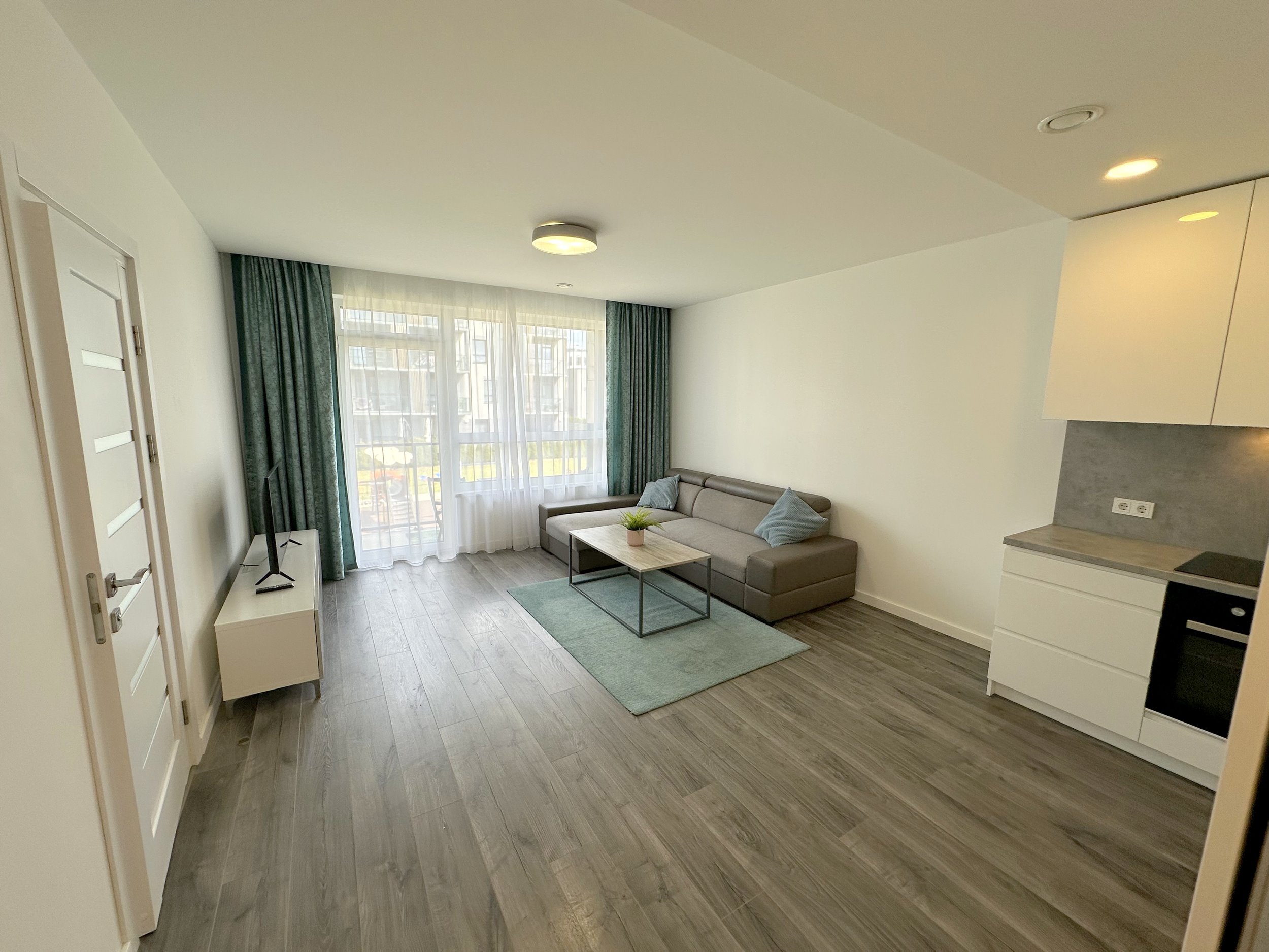 Erdvi bei šviesi svetainė kartu su virtuvės zona, atskiras miegamasis, dušo kabina ir WC kartu. Erdvus balkonas į vidinį kiemelį.