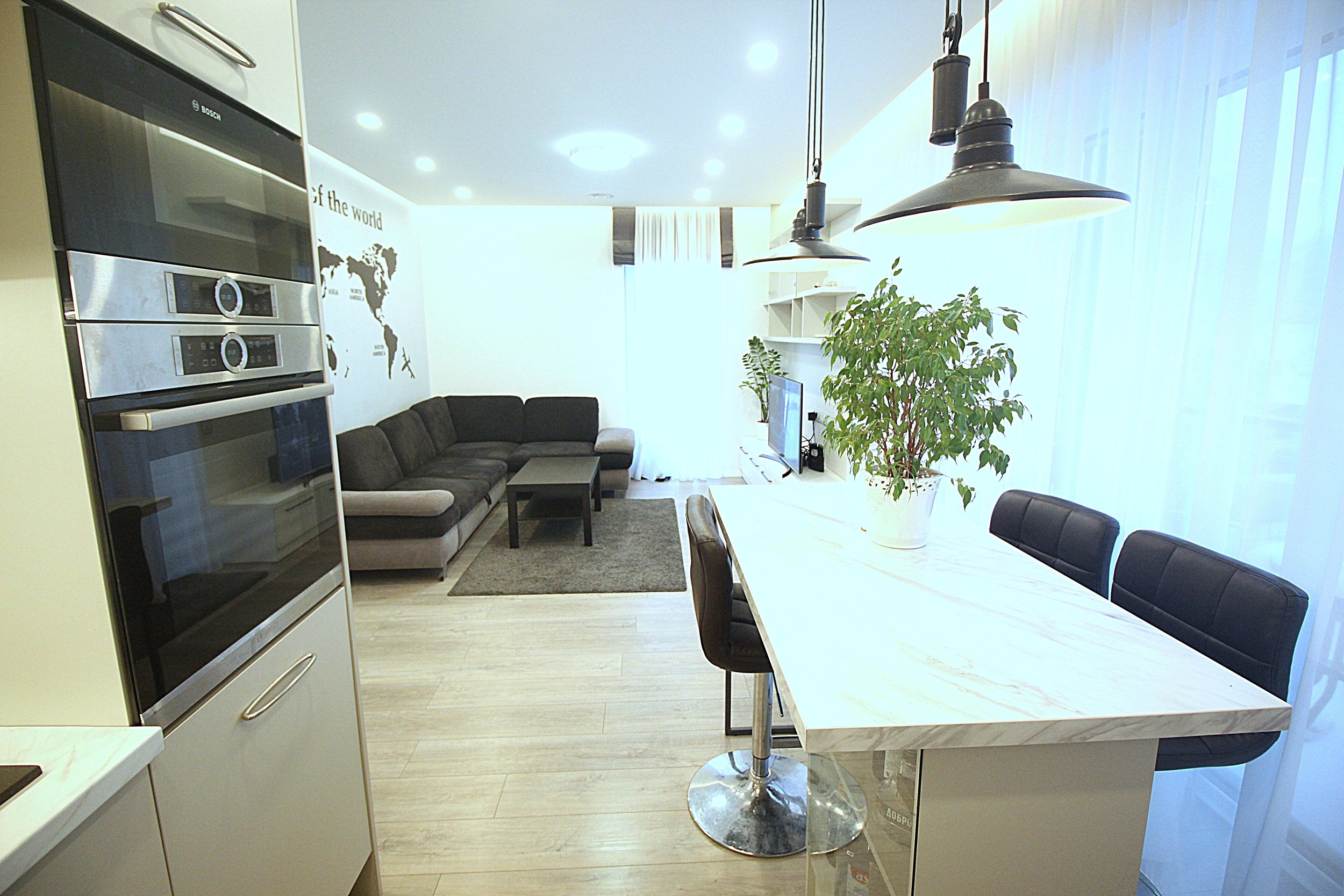 Buto išplanavimas: 2 kambariai, virtuvės zona bendrai su erdve svetaine, vonia ir WC kartu, didelis balkonas.