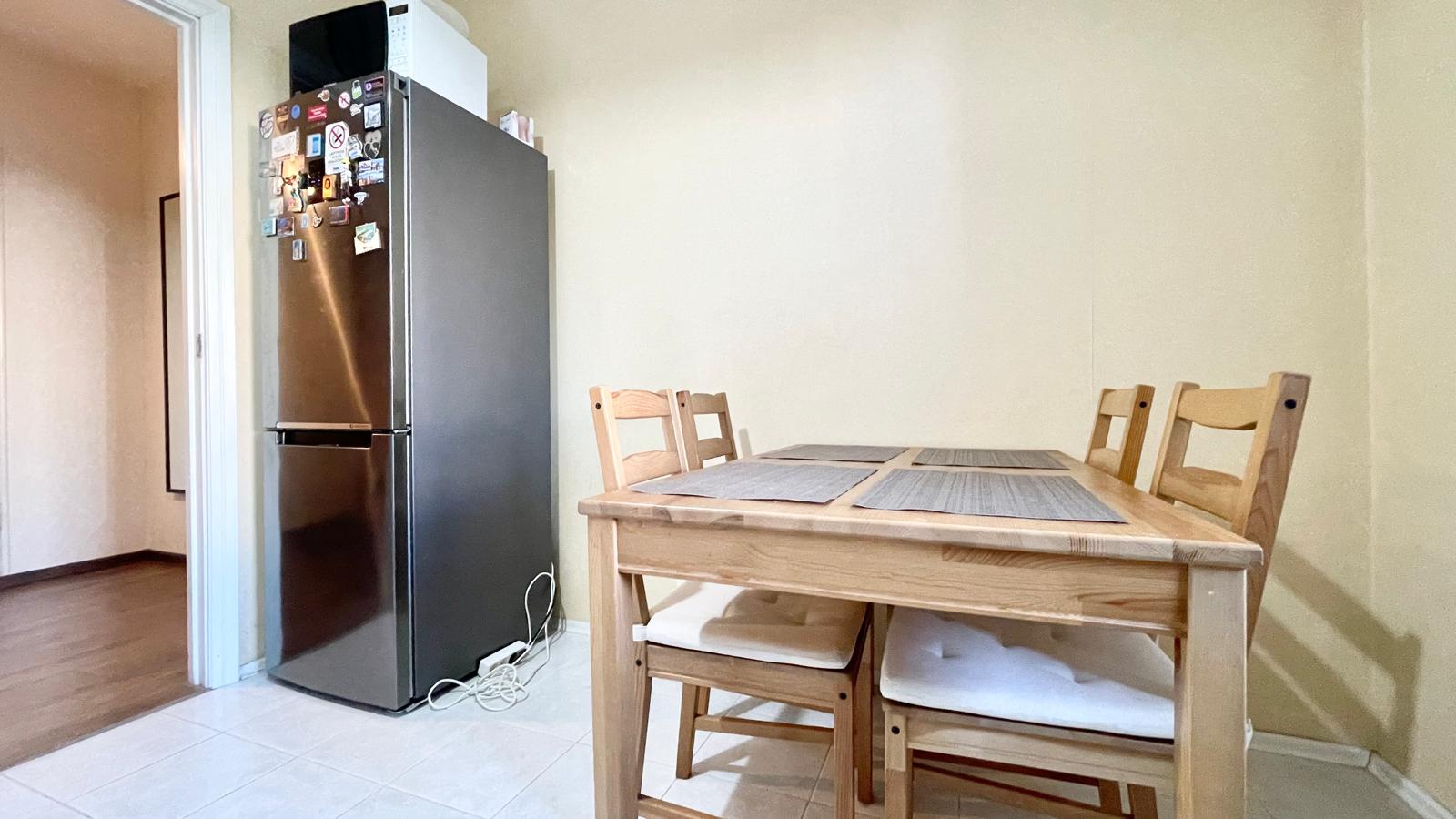 Bute yra visi reikalingiausi baldai: skalbimo mašina, šaldytuvas su šaldikliu, kaitlentė ir t.t.