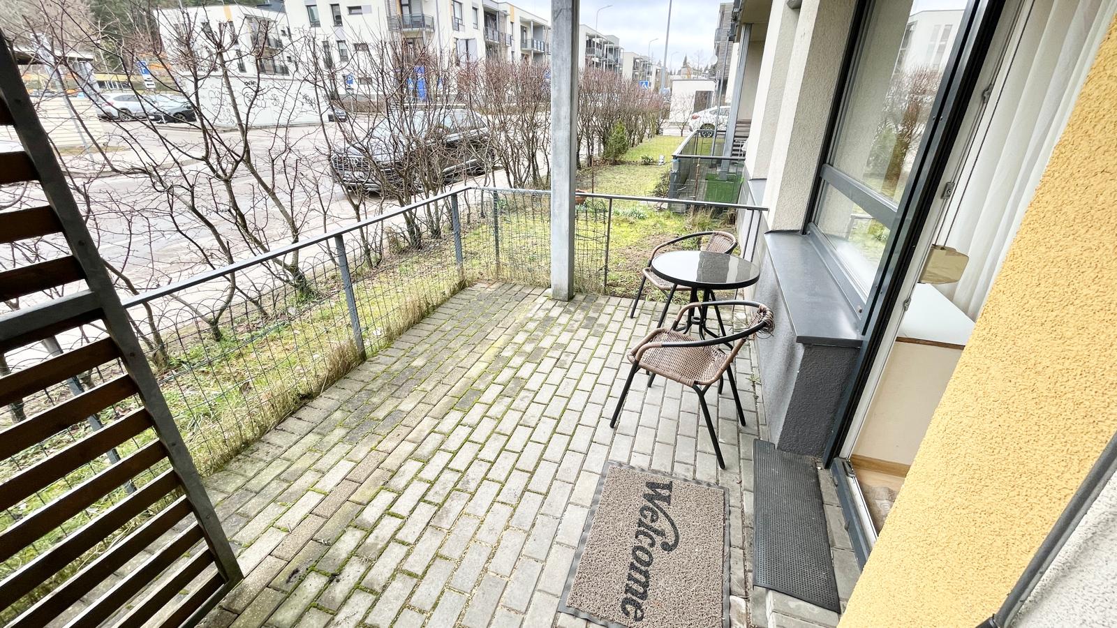 Išplanavimas: miegamasis, svetainė, virtuvė, tualetas ir dušas, terasa