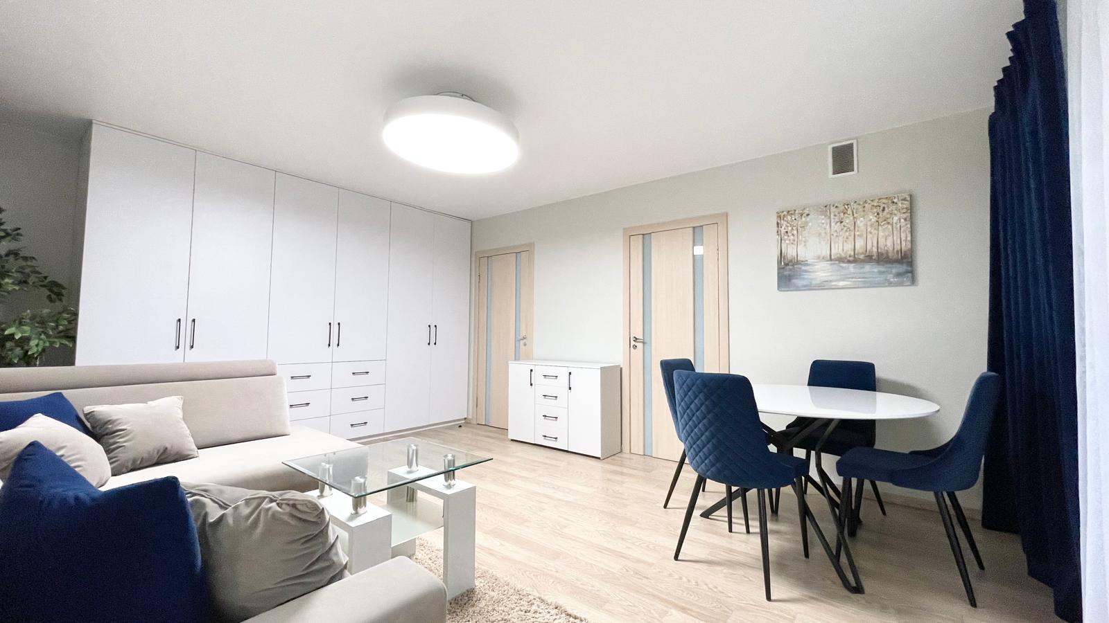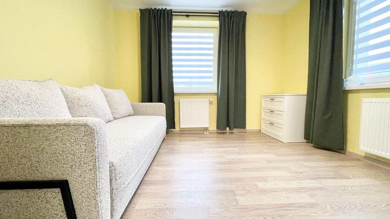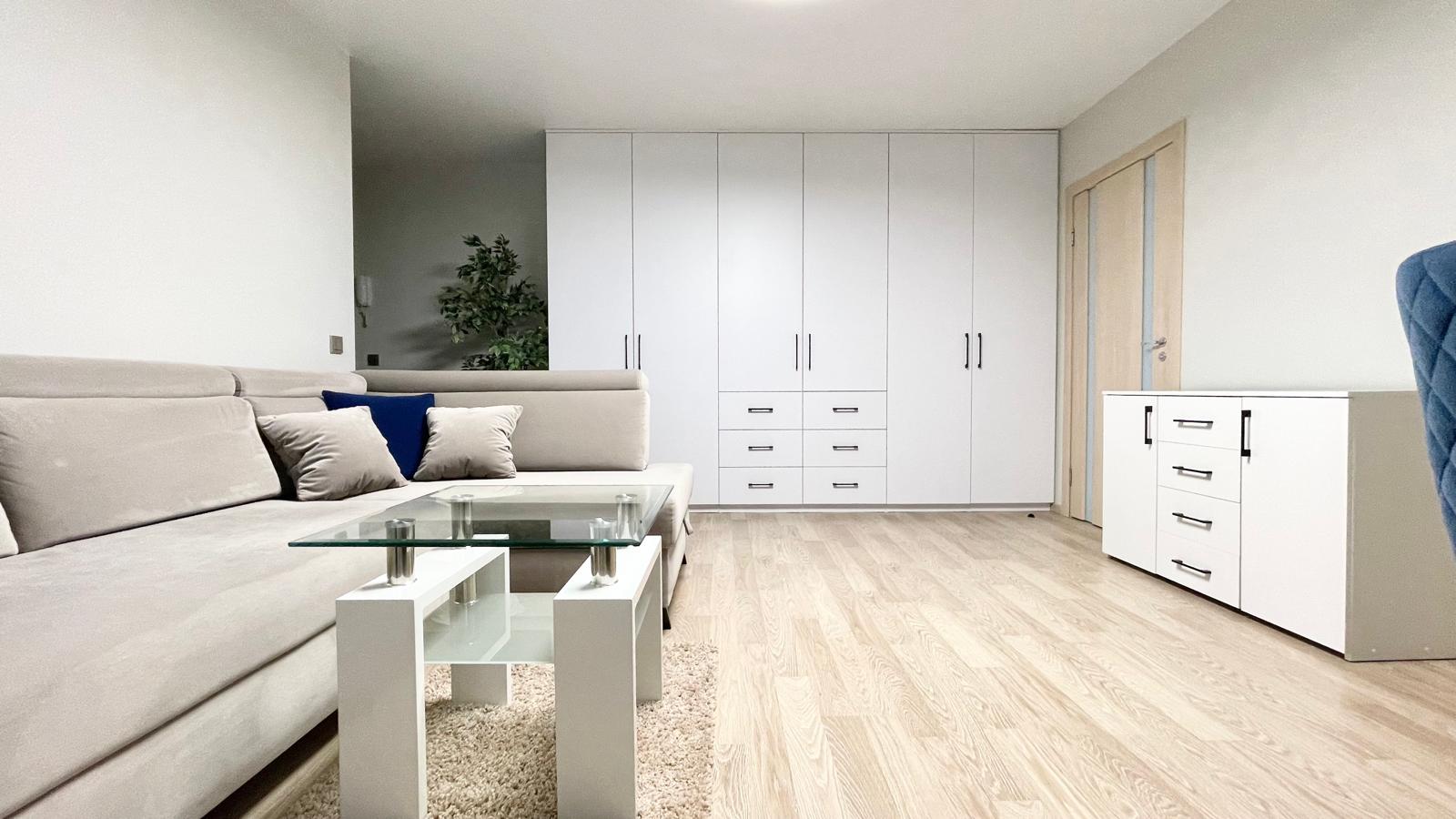 • Svetainė sujungta kartu su virtuve, bei du atskiri kambariai.