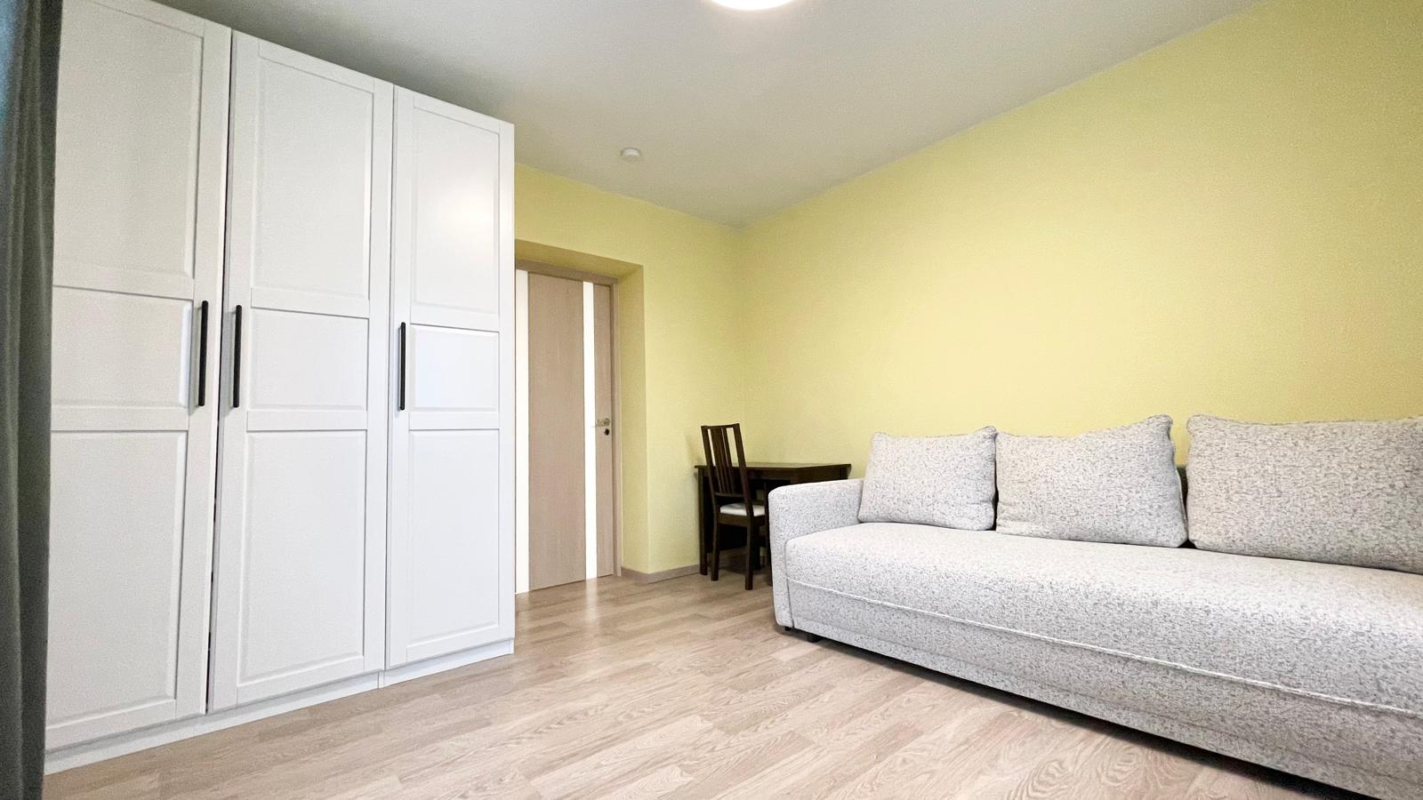 • kitam kambaryje yra sofa-lova , darbo stalas bei spinta