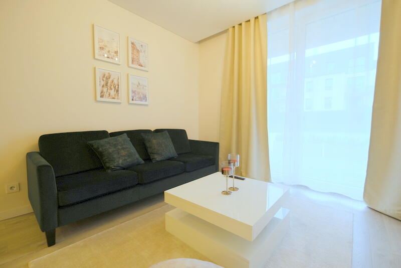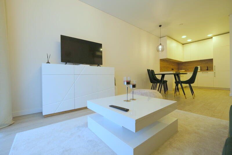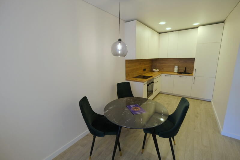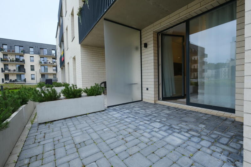 Žaibo g.1 , 1 aukštas iš 4, 46 kv.m., 2022 m. mūrinis, virtuvė kartu su svetaine, vonia ir tualetas kartu, terasa.