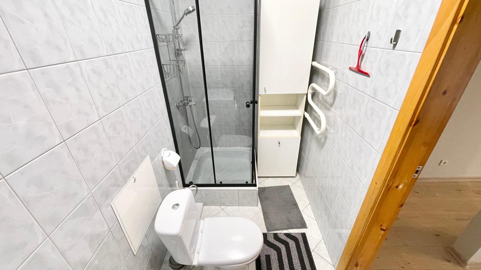 - Vonios kambarys su dušo kabina .