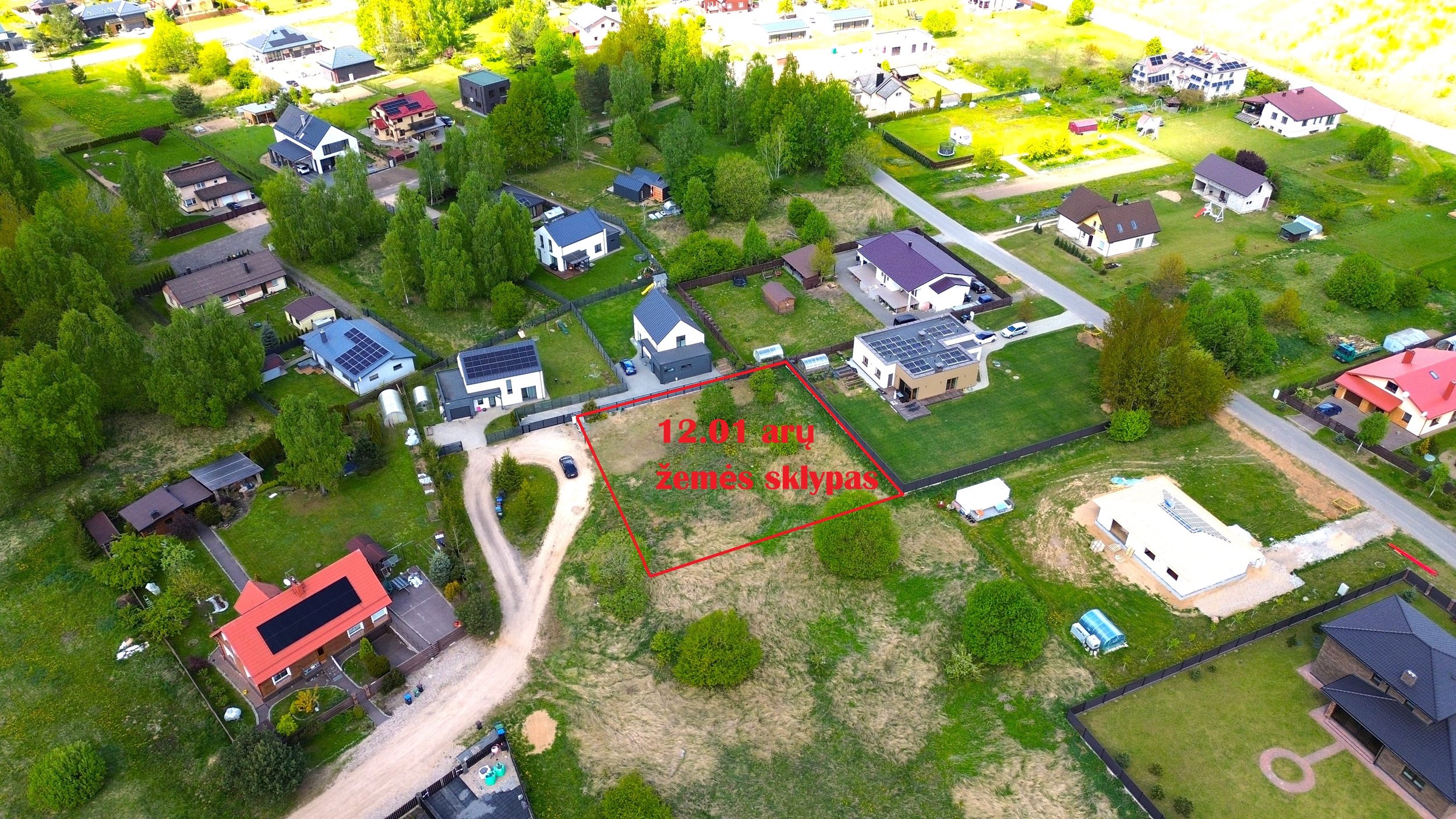 12.01 arų sklypas, mažaaukščių gyvenamųjų namų statybai .