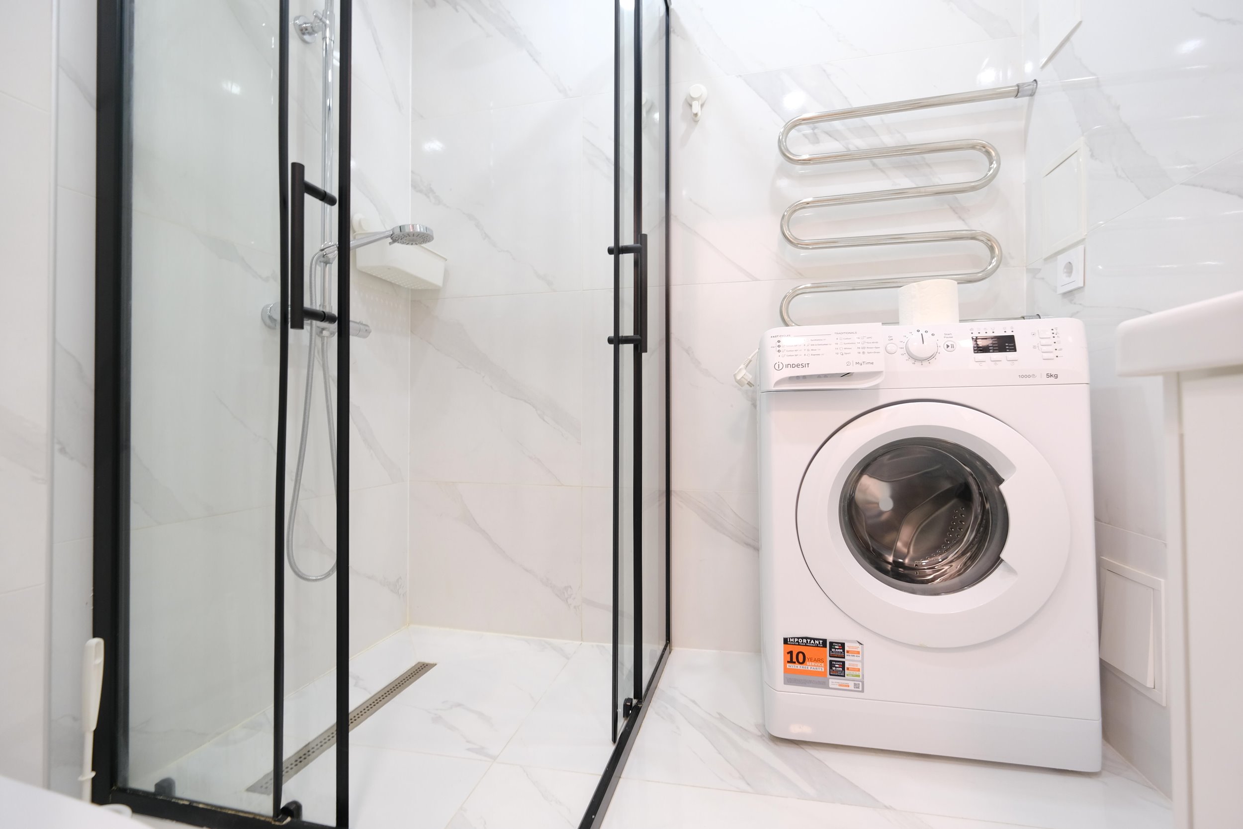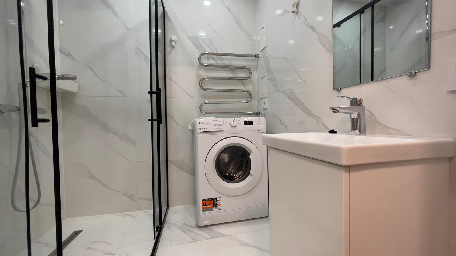 Bute yra visi reikalingi baldai (šaldytuvas, viryklė, skalbimo mašina.