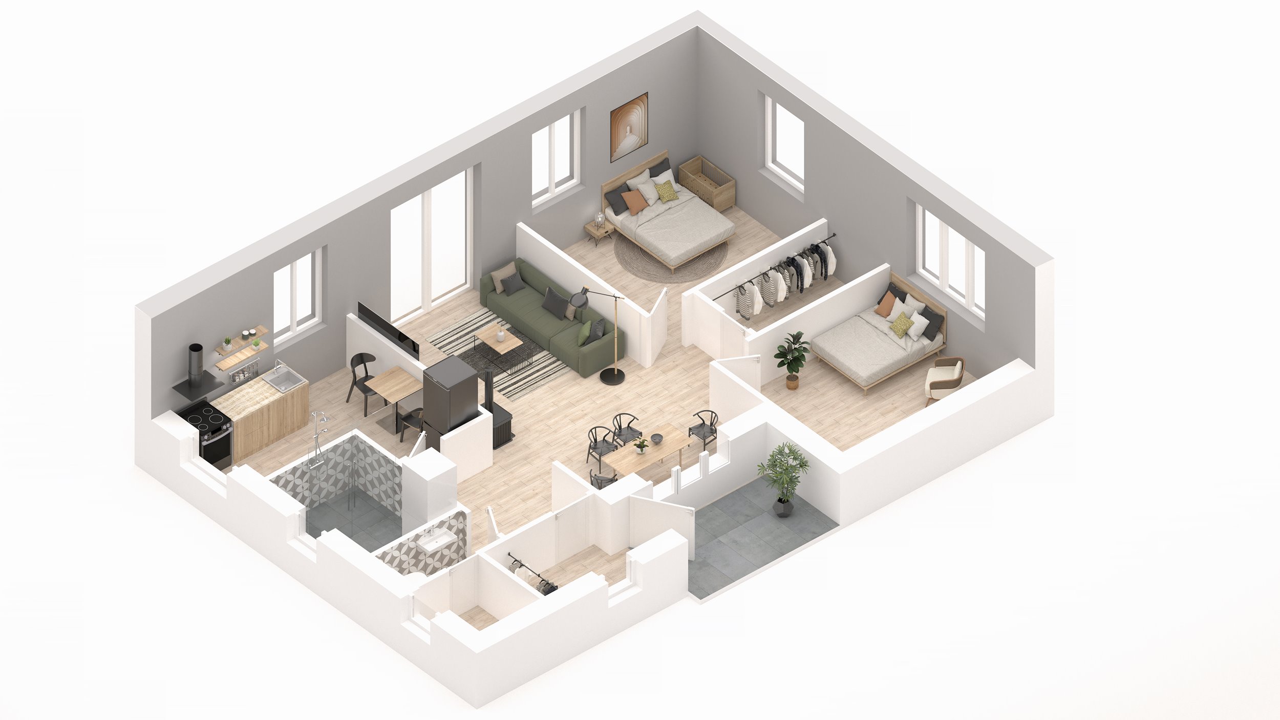 • Visi kambariai izoliuoti
