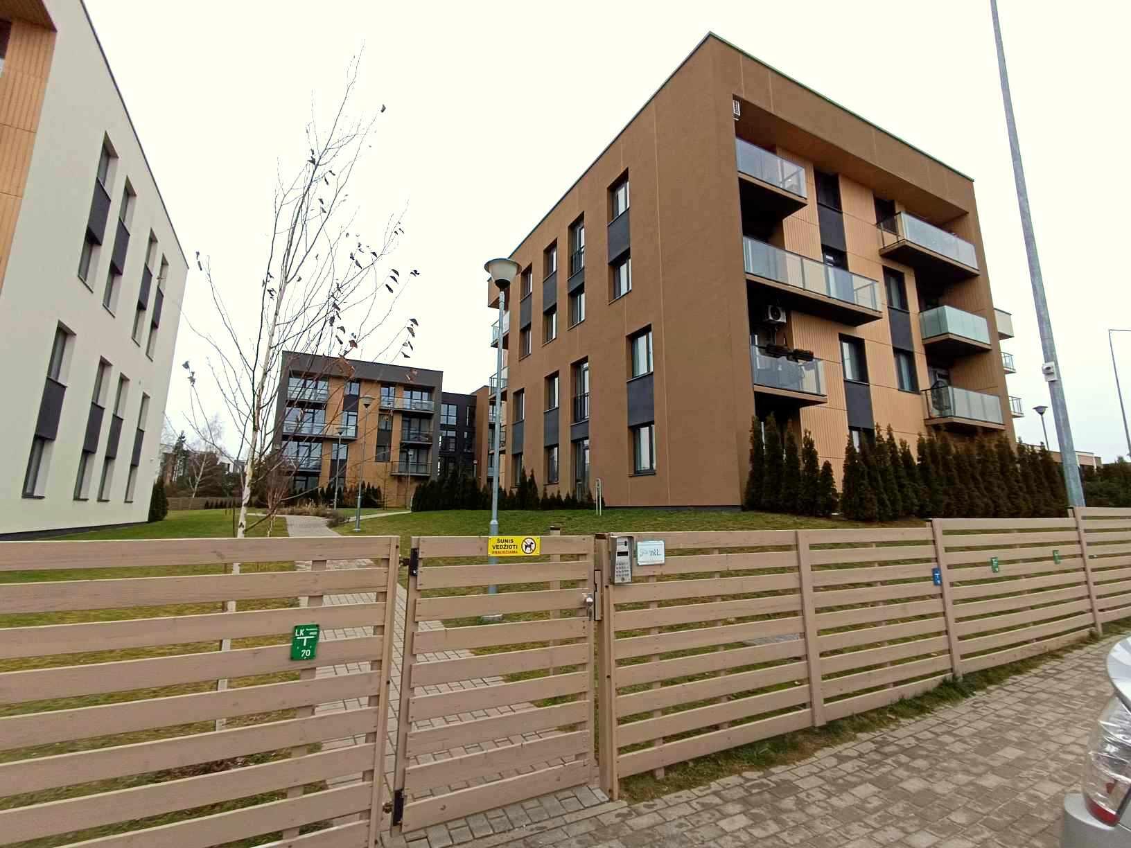 Aptverta ir sutvarkyta namo teritorija su rakinamais varteliais.