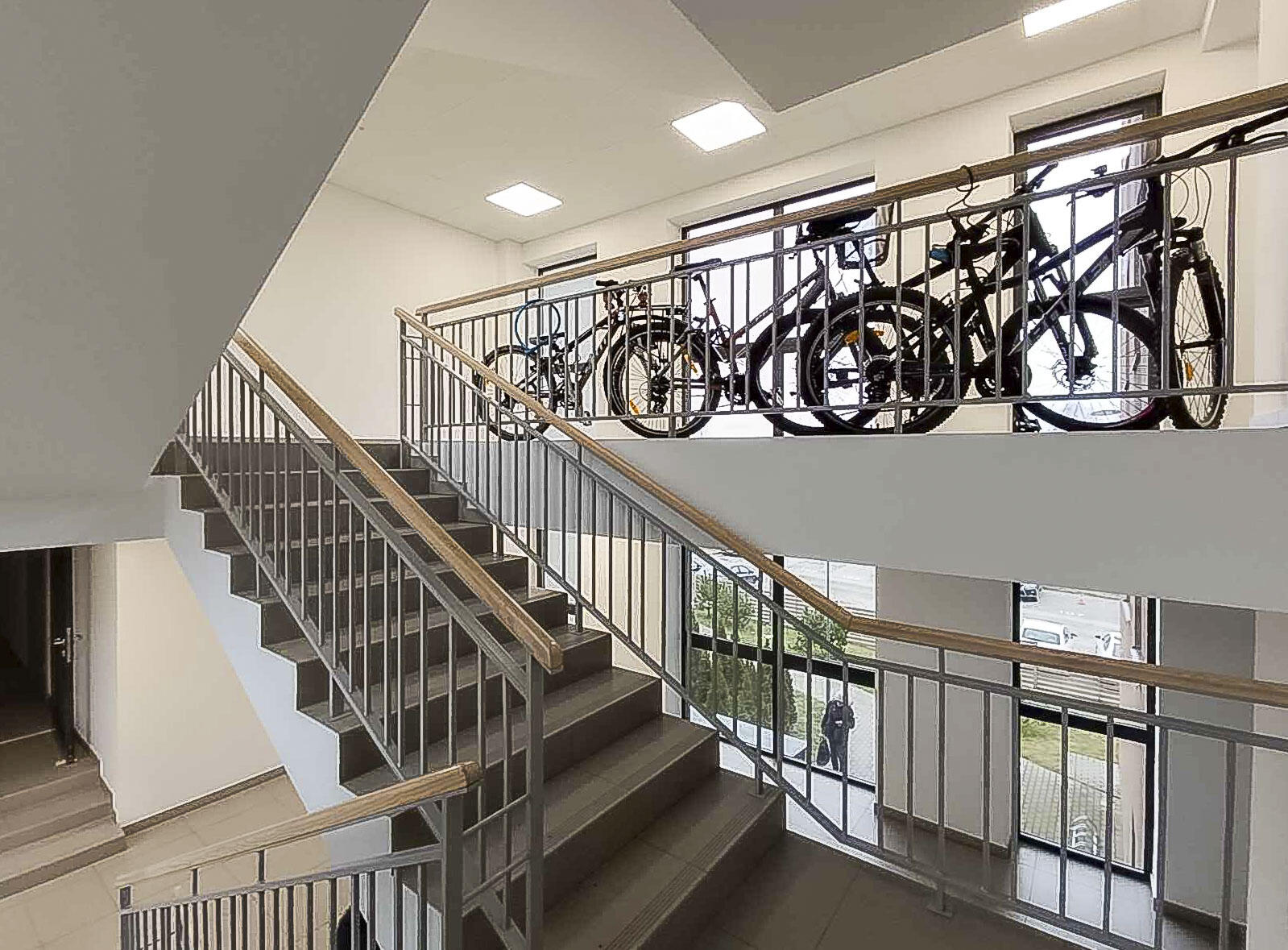Labai tvarkinga, erdvi laiptinė, kodinės laiptinės durys, domofonas.