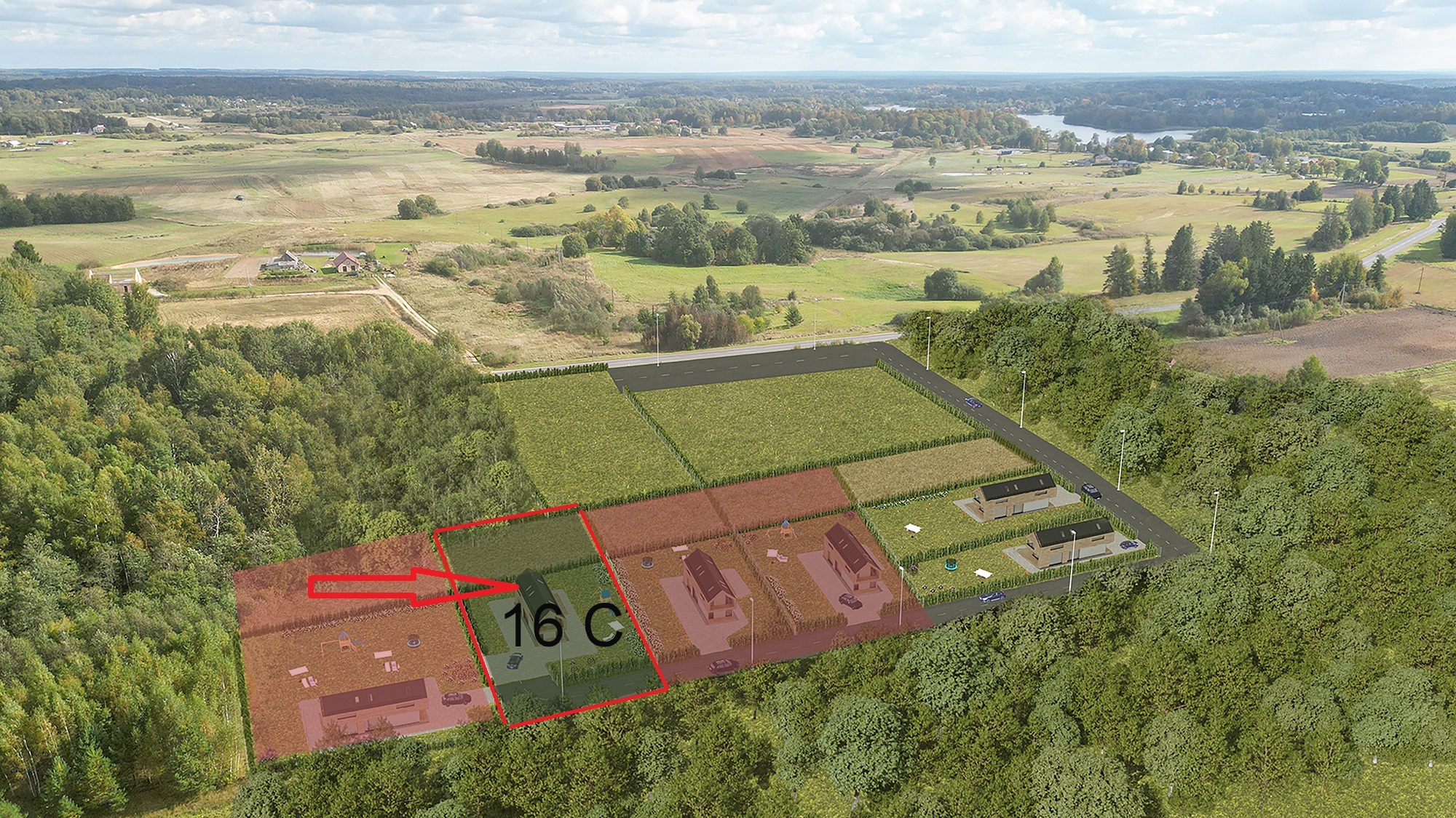 - 6 namų valdos sklypai su žaliąja zona;