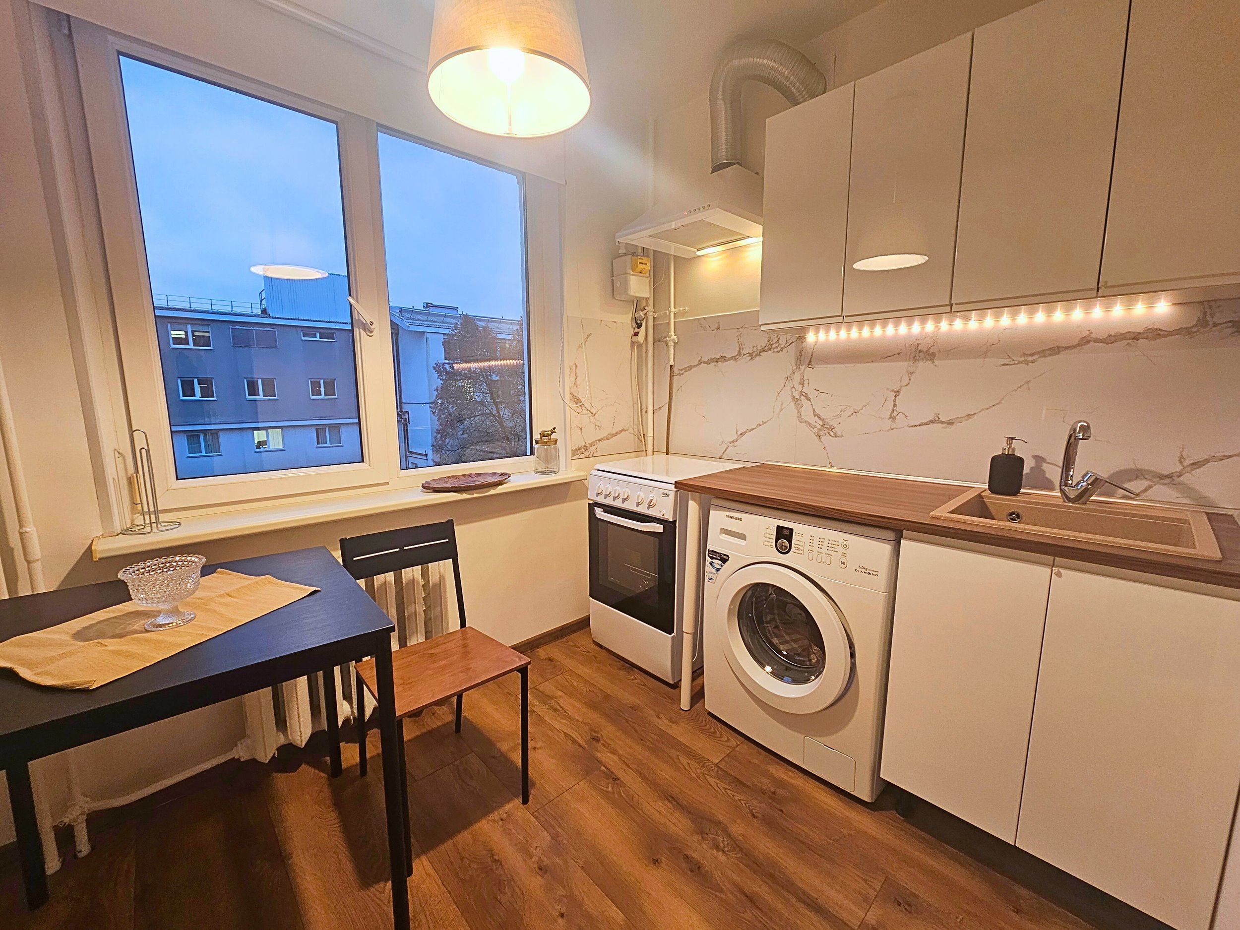 - Kokybiškai įrengtas butas su šviesiomis sienomis, dideliais langais, akustinėmis ir saugiomis durimis.