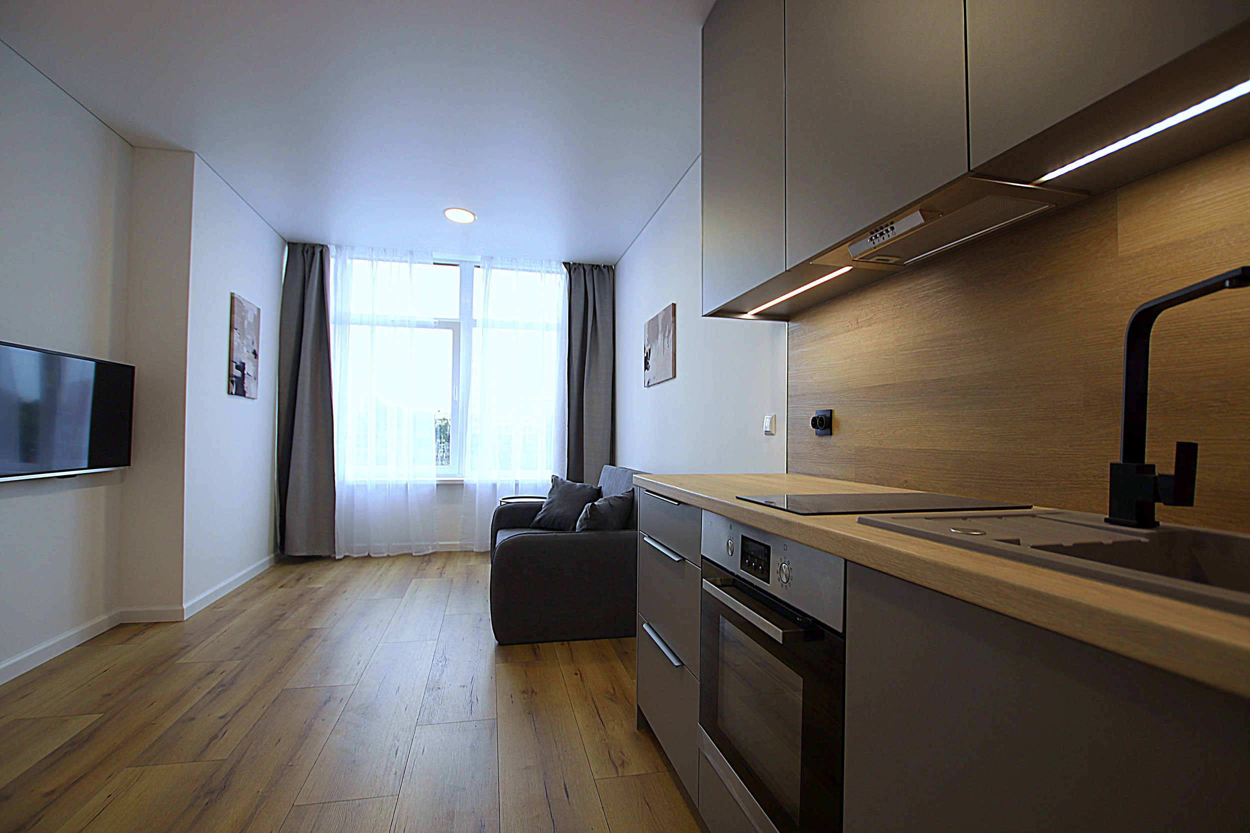 - Svetainė sujungta kartu su virtuvės zona;