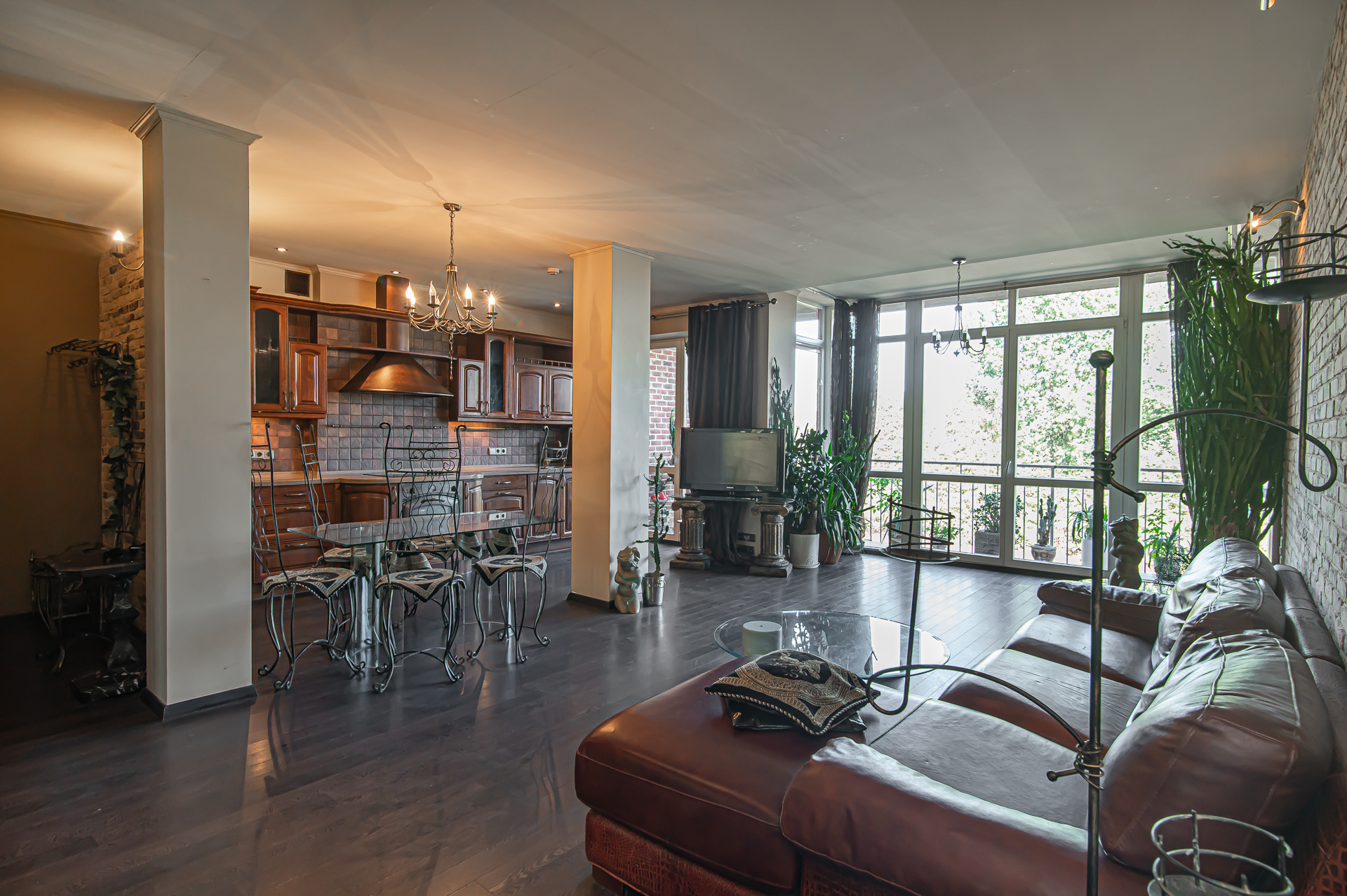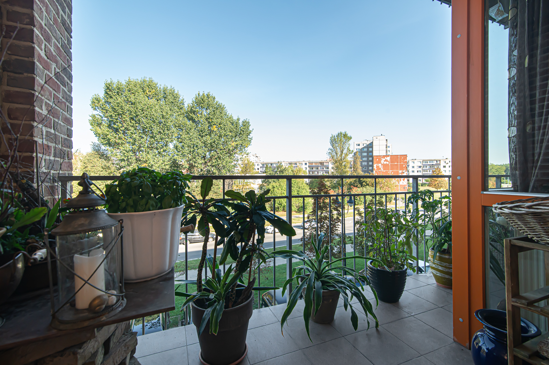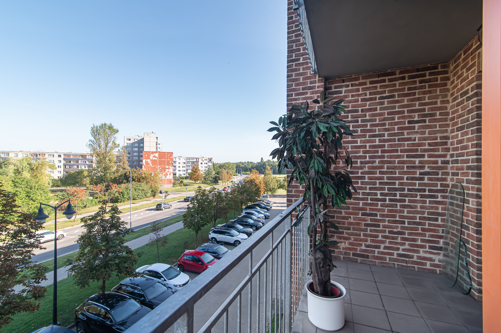 -Virtuvė su erdve svetaine ir balkonu per visą buto plotį;