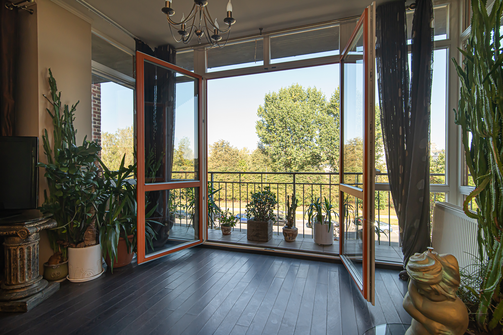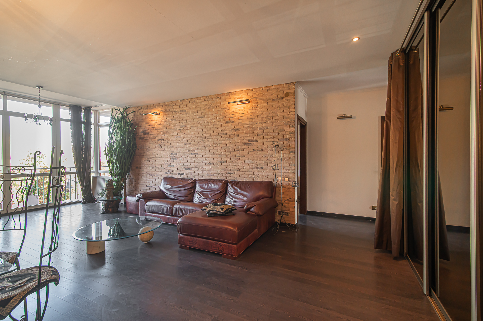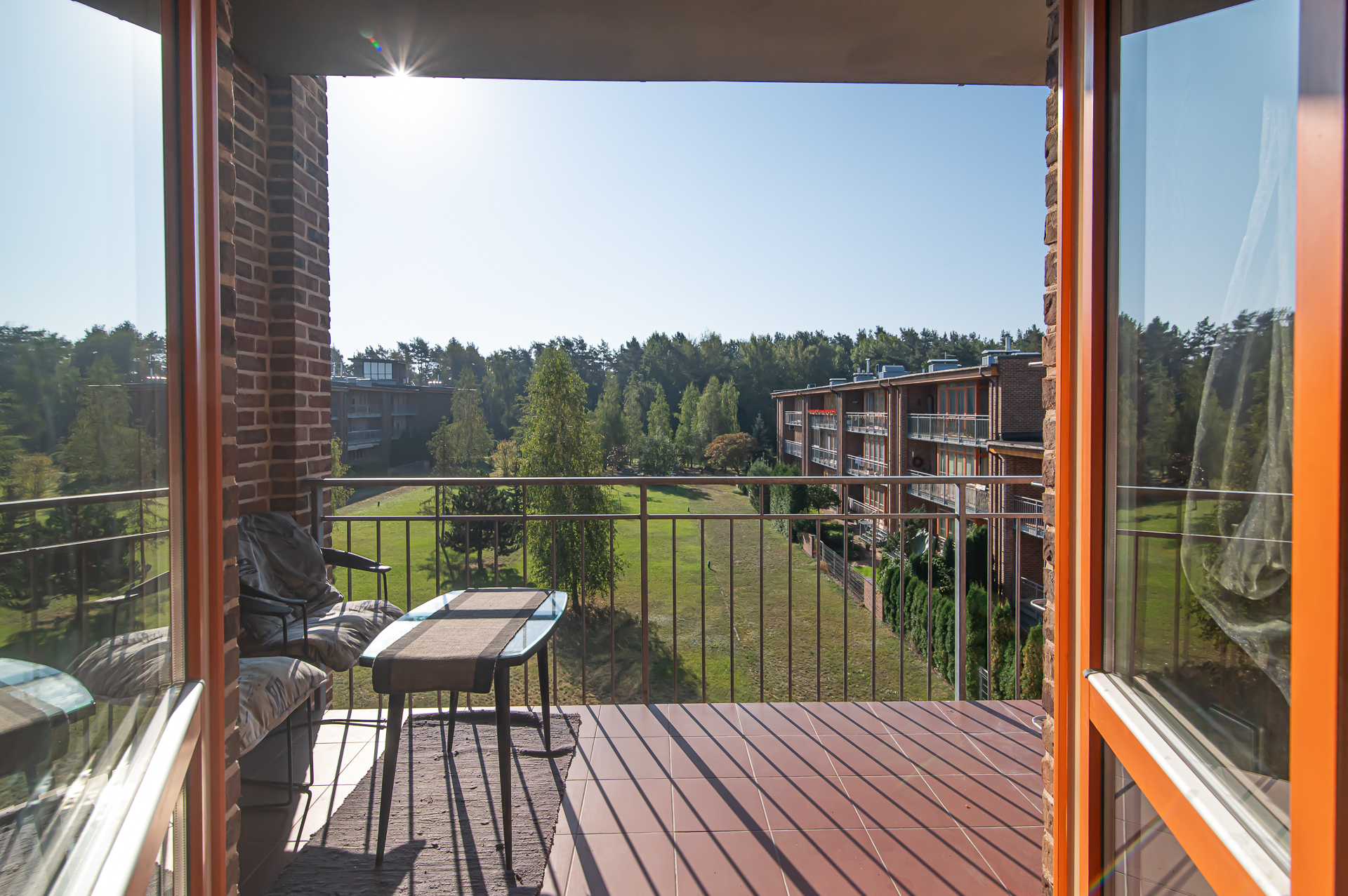 -Virtuvė su erdve svetaine ir balkonu per visą buto plotį;