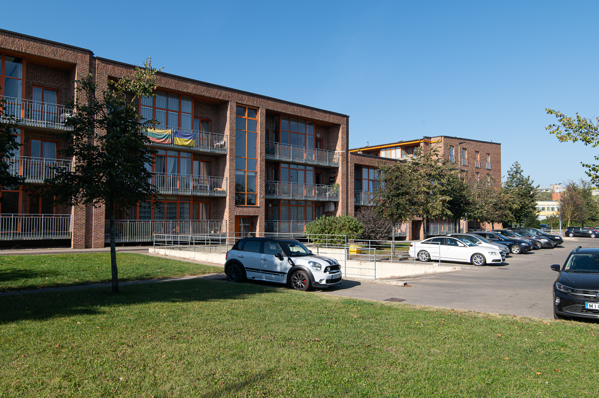 Prie namo didelė antžeminė parkavimo aikštelė;