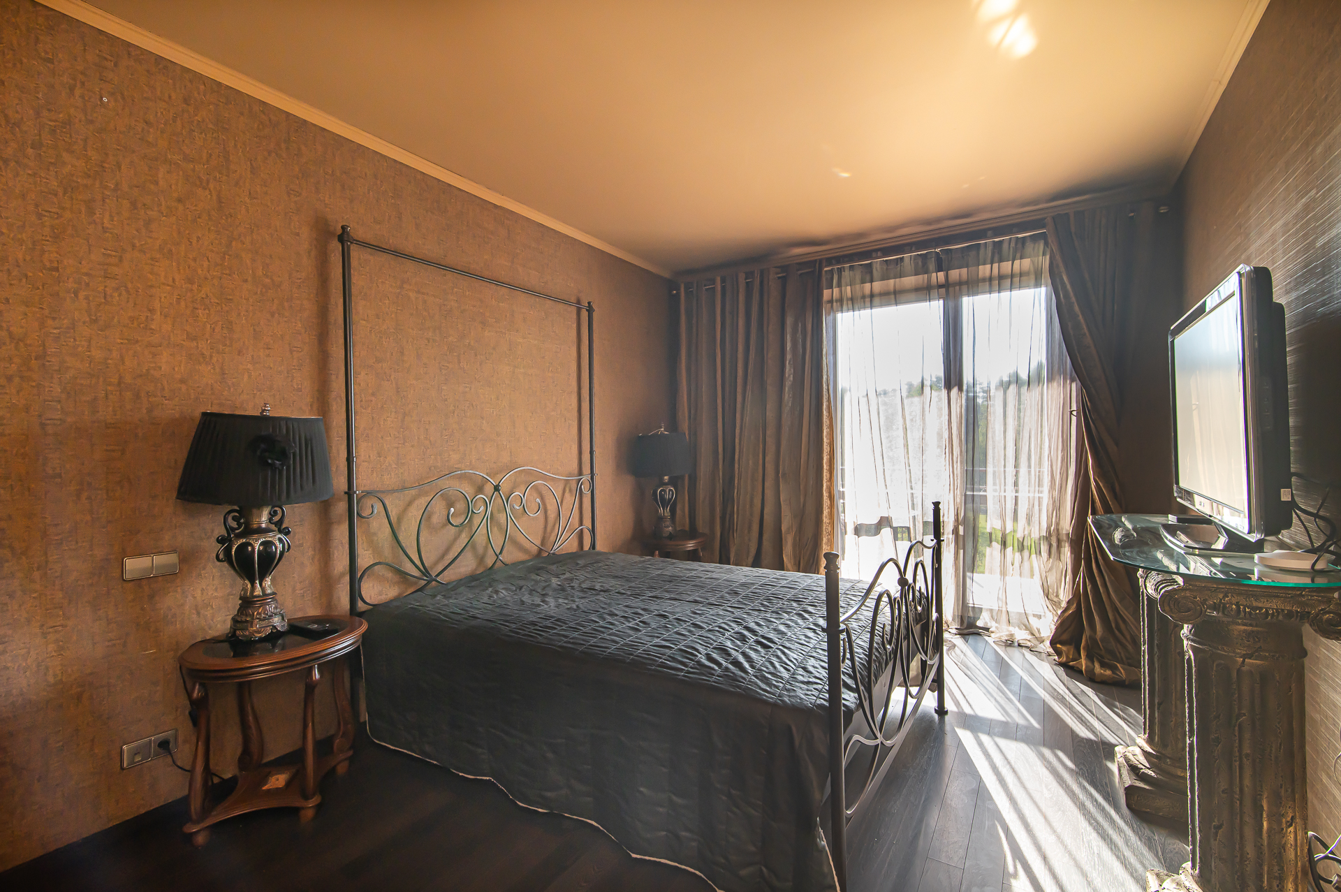 -Miegamasis kambarys su įeinama drabužine ir balkonu.