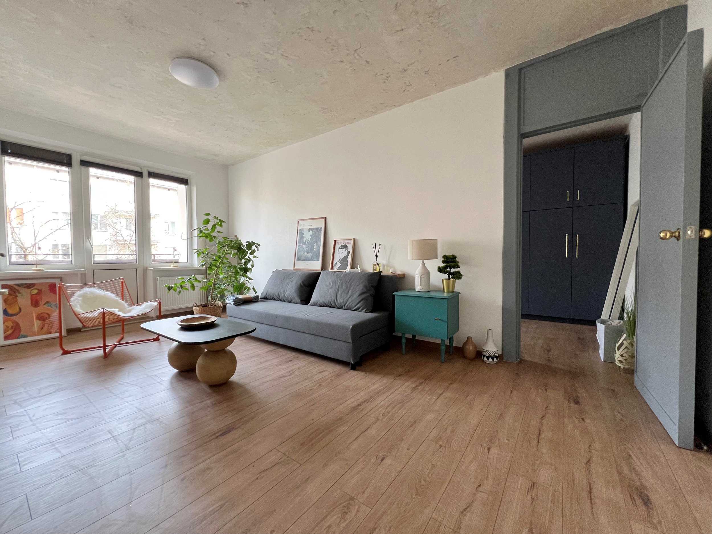 Geroje vietoje, Naujamiestyje netoli centro, Birželio 23-iosios g. išnuomojamas visiškai naujai po kapitalinio remonto jaukiai ir stilingai įrengtas 58 kv.m. ploto, trijų kambarių butas RENOVUOAME NAME su reguliuojamu šildymu.