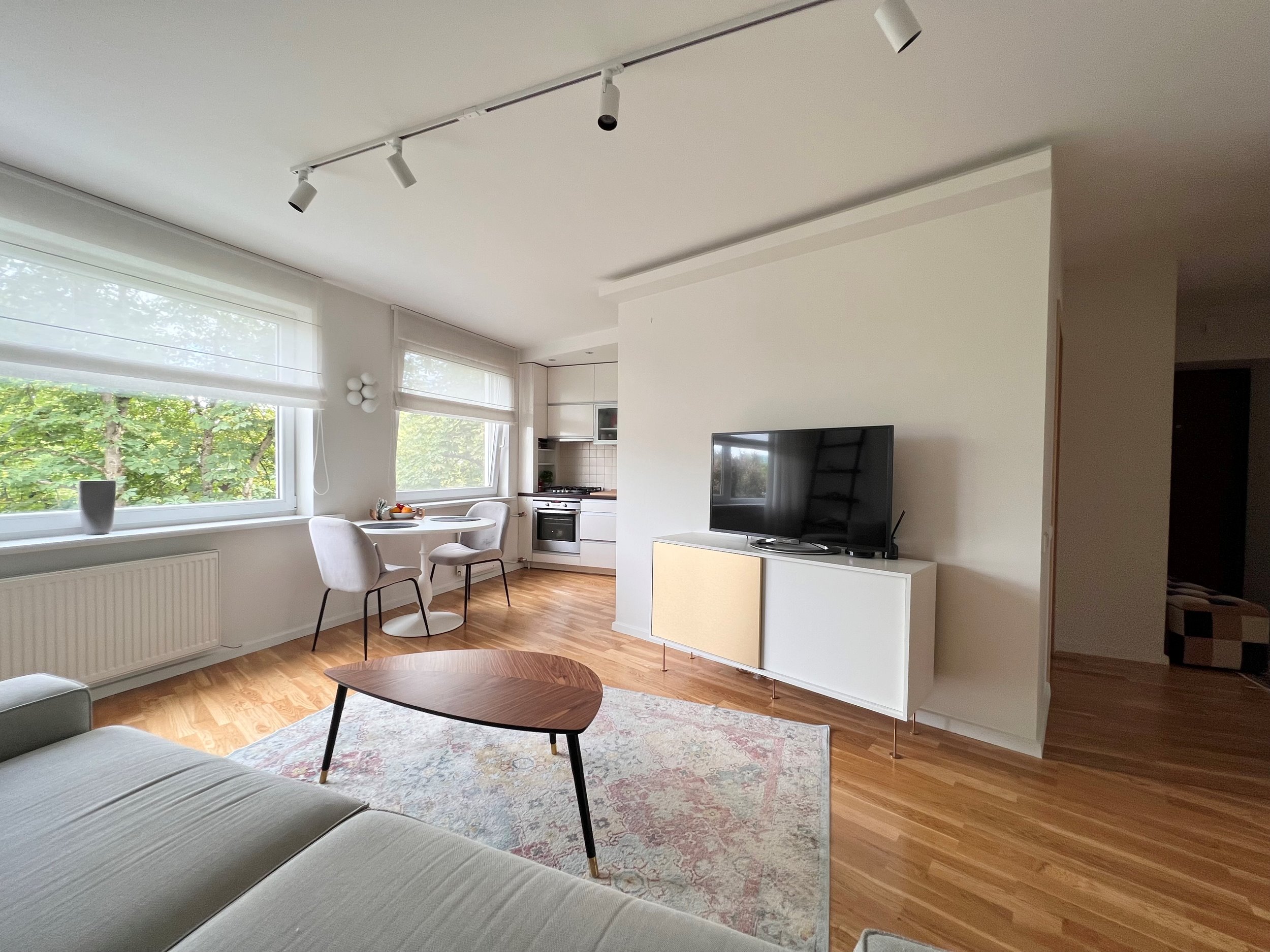 Patrauklioje vietoje, Žveryne, išnuomojamas naujai ir stilingai įrengtas trijų kambarių butas Latvių g. su parkavimo vieta uždarame parkinge.