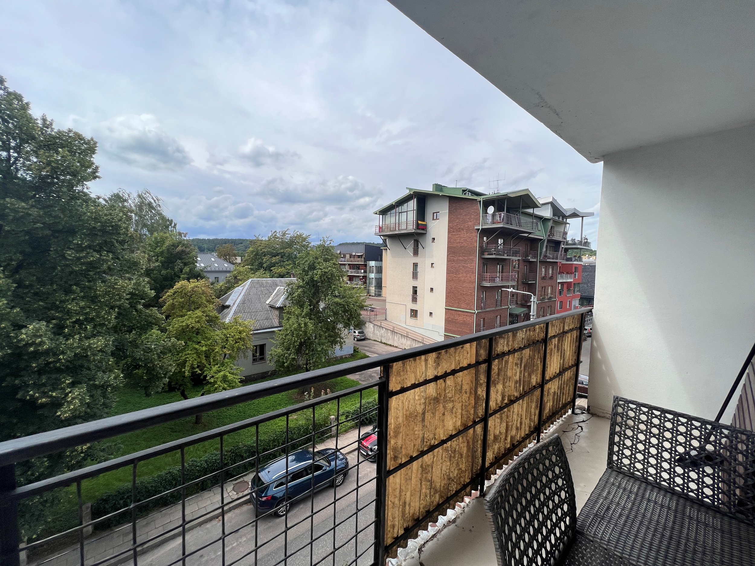 Butas labai šviesus, dideliais langais į rytus ir vakarus. Turi balkoną miegamajame.
