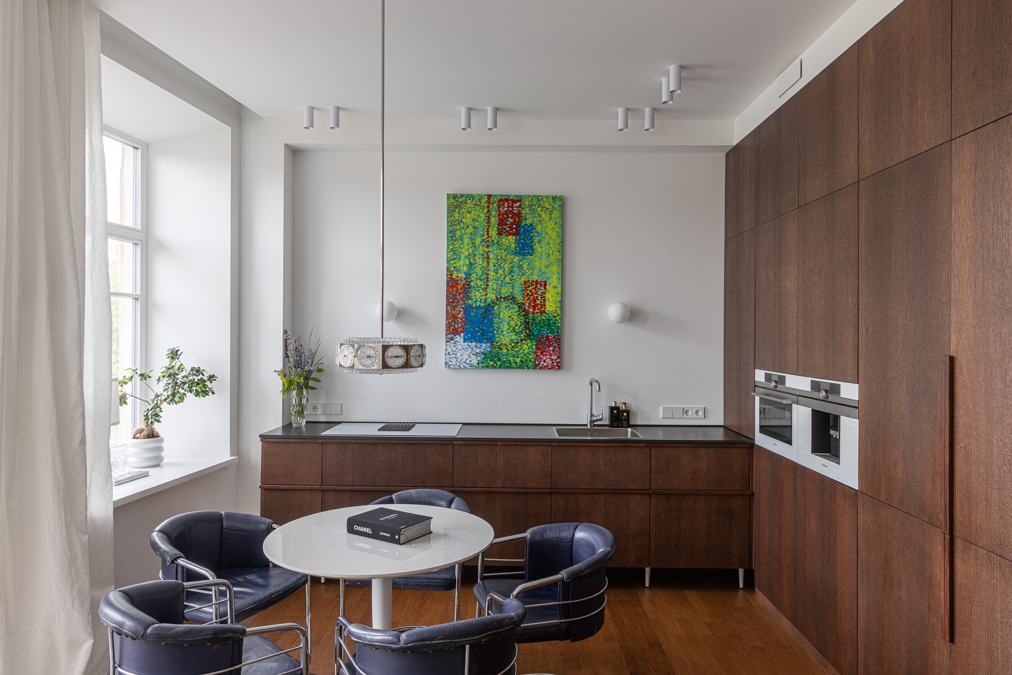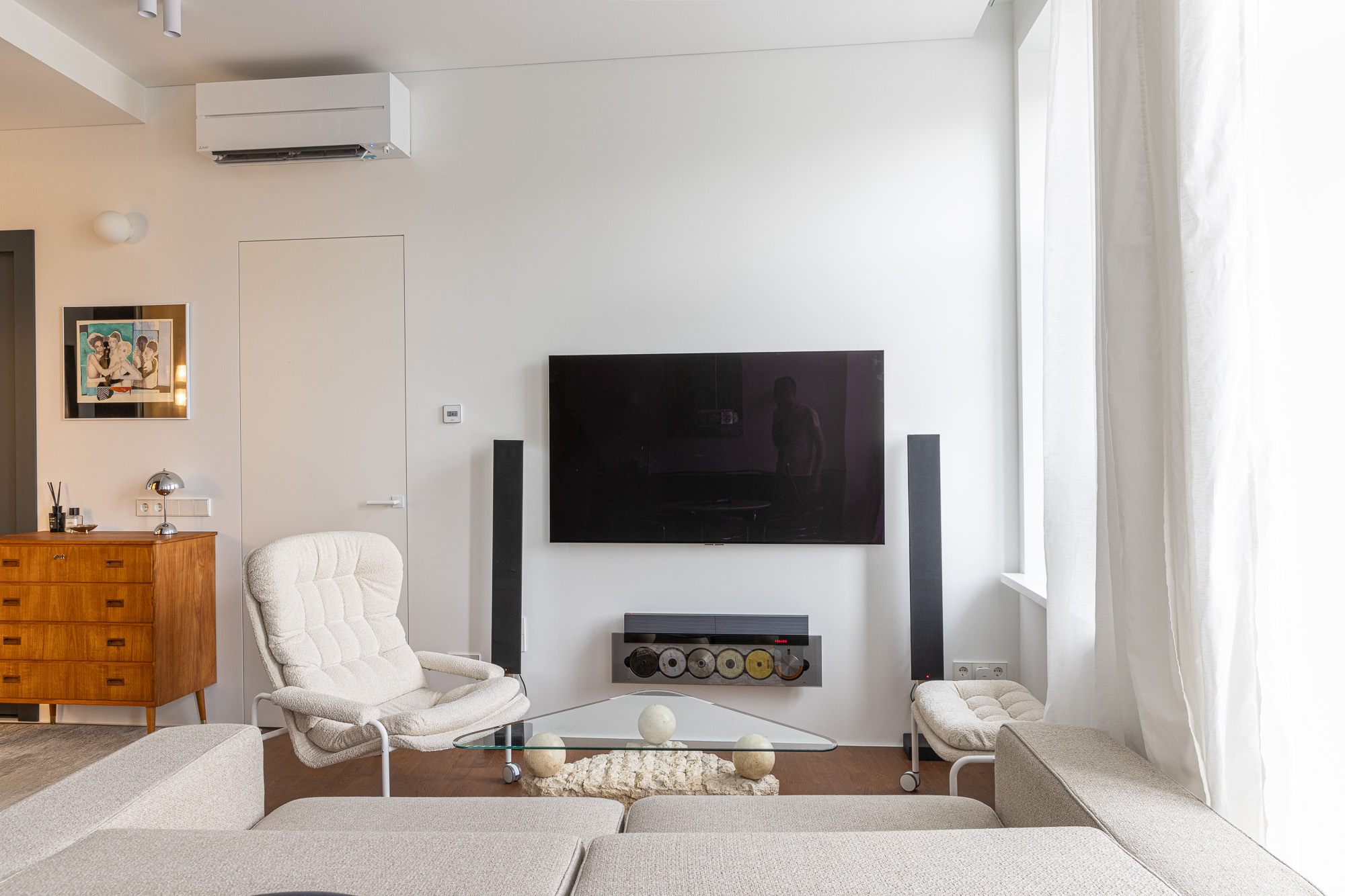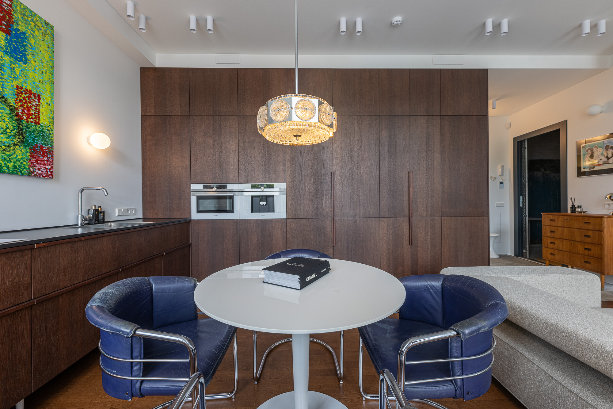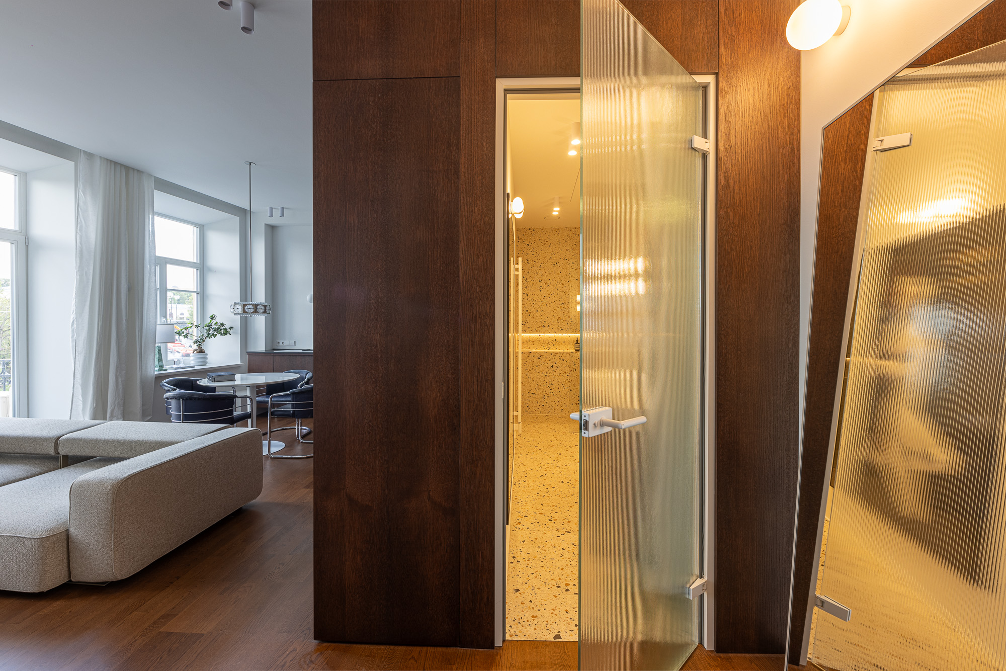 Bute sutvirtintos perdangos, naujai apšiltintos sienos, sudėti mediniai dviejų kamerų langai su aliuminio apkaustais išorėje. Gatvės triukšmo beveik negirdėti. Visame bute sumontuotas Uponor grindinis šildymas, papildomai šildymui ir vėsinimui sudėti Mitsubishi kondicionieriai, oro kokybei - rekuperacinė sistema. Pakeista nauja kanalizacija, bei elektros instaliacija. Grindys iš natūralaus ąžuolo parketlenčių, vonioje - full body terazzo plytelės. Baldai bute iš natūralaus medžio bei lukšto. Sudėta kokybiška ir patikima santechnika Laufen + Kartell, Tres, Viega, Reginox, Hansgrohe. Virtuvėje orkaitė bei įmontuojamas kavos aparatas Siemens, kaitlentė su garų surinkėju Elica, indaplovė, skalbimo mašina su džiovinimo funkcija 2in1, Electrolux, šaldytuvas - Bosch. Baldai bei interjero detalės tokių žinomų vardu kaip B&B Italia, Scapa, Kartell, Carl Fagerlund by Orrefors. Papildomai paliekami du LG OLED televizoriai bei Bang&Olufsen garso sistemos. Staliukai iš onikso ir travertino.