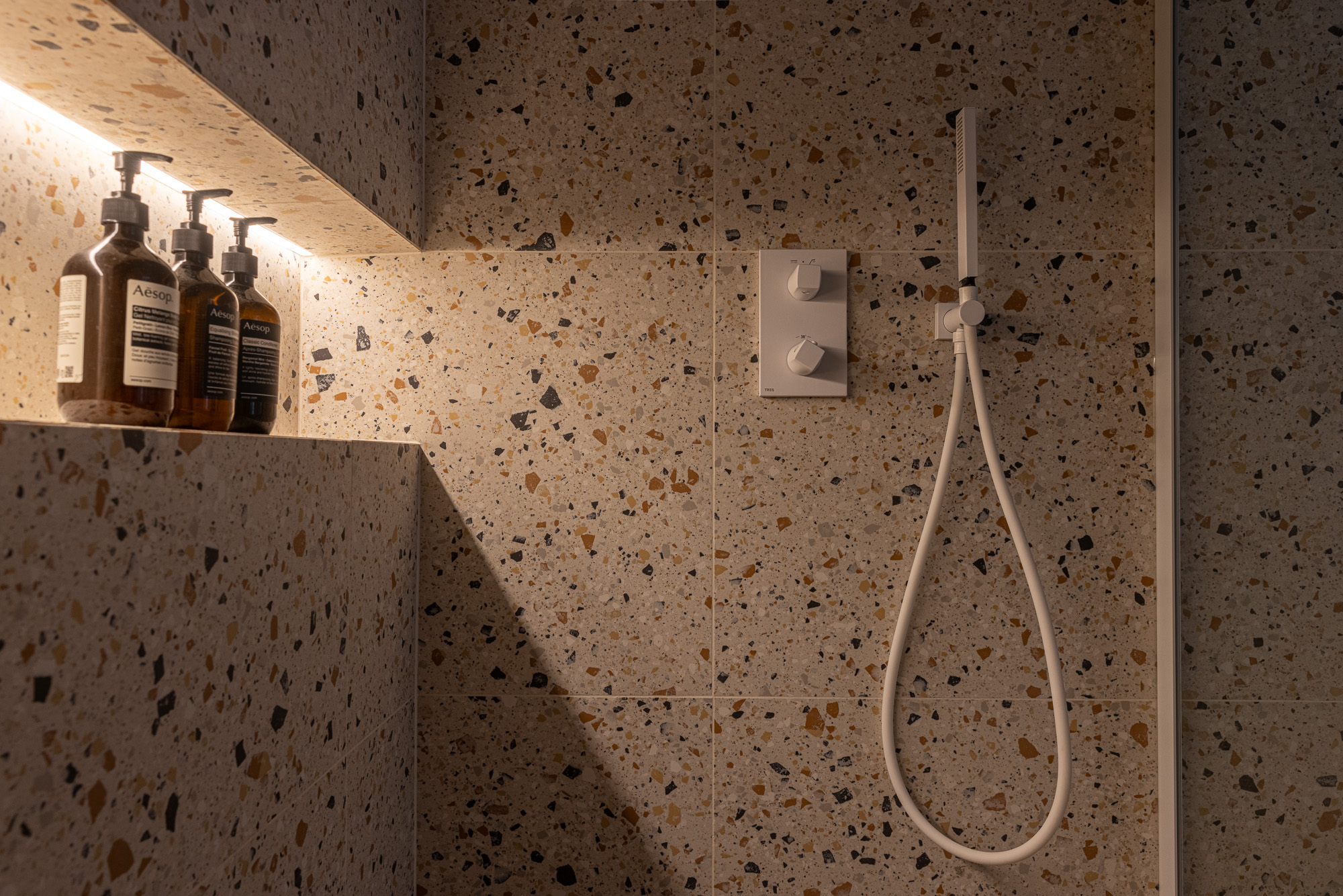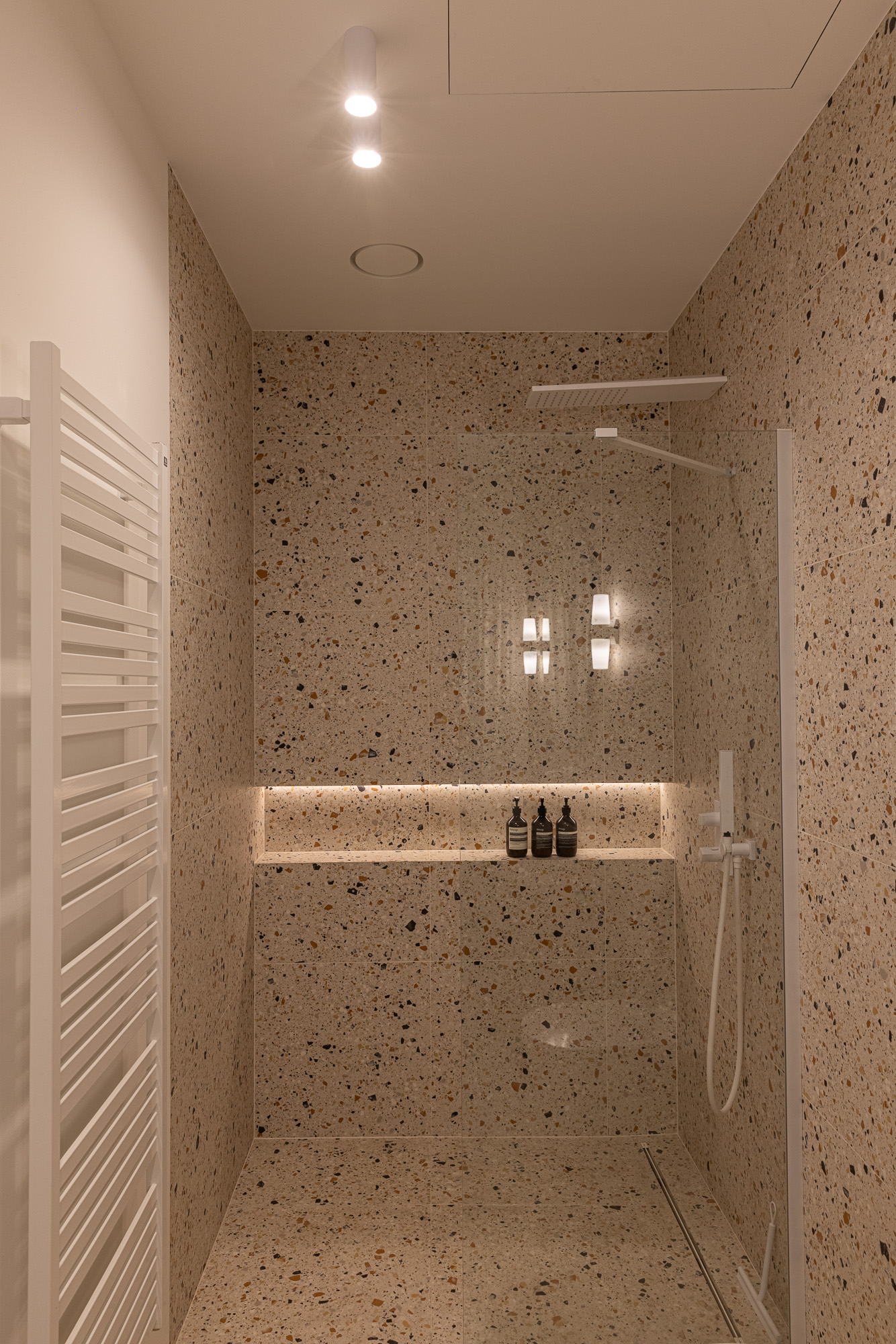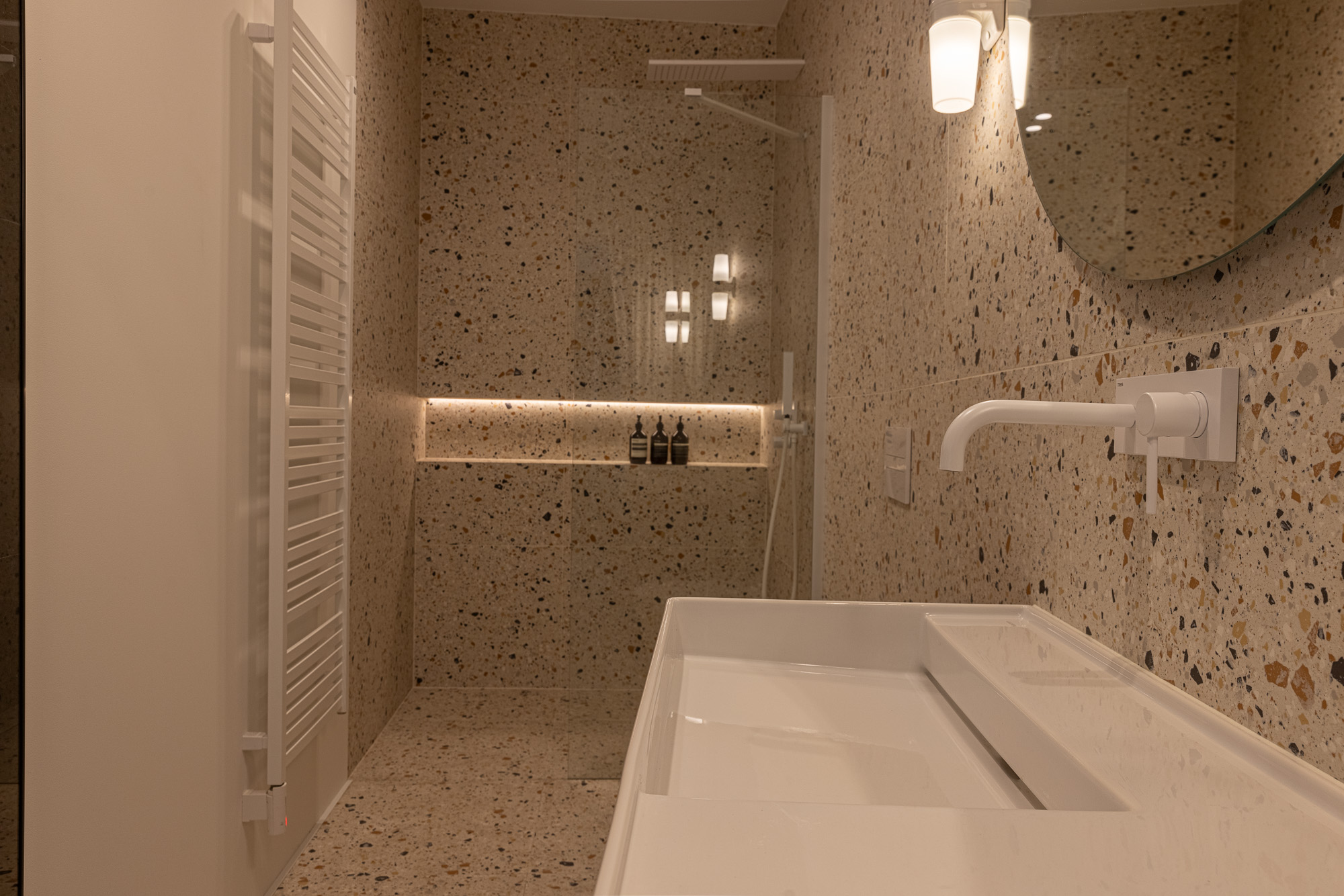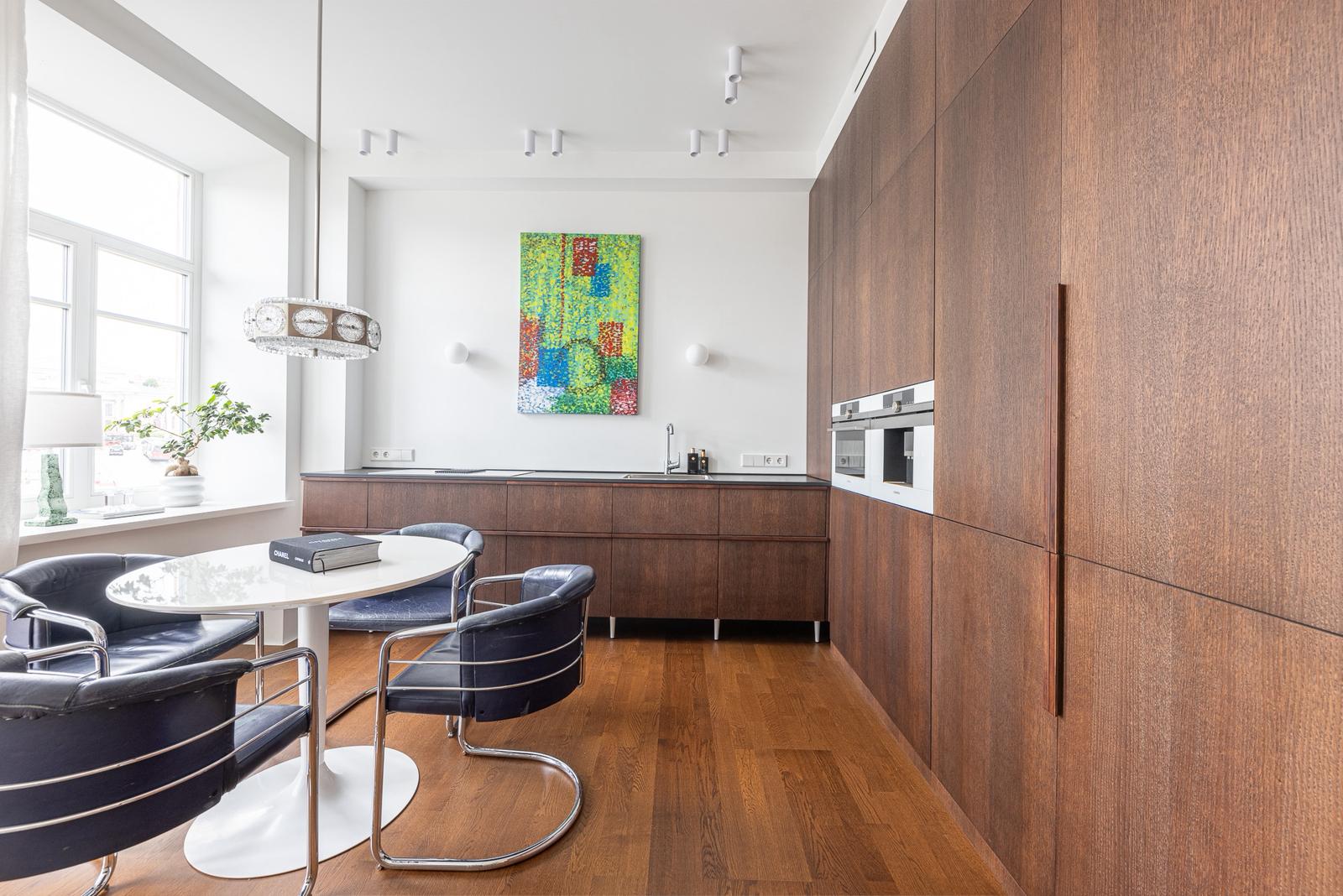 Bute sutvirtintos perdangos, naujai apšiltintos sienos, sudėti mediniai dviejų kamerų langai su aliuminio apkaustais išorėje. Gatvės triukšmo beveik negirdėti. Visame bute sumontuotas Uponor grindinis šildymas, papildomai šildymui ir vėsinimui sudėti Mitsubishi kondicionieriai, oro kokybei - rekuperacinė sistema. Pakeista nauja kanalizacija, bei elektros instaliacija. Grindys iš natūralaus ąžuolo parketlenčių, vonioje - full body terazzo plytelės. Baldai bute iš natūralaus medžio bei lukšto. Sudėta kokybiška ir patikima santechnika Laufen + Kartell, Tres, Viega, Reginox, Hansgrohe. Virtuvėje orkaitė bei įmontuojamas kavos aparatas Siemens, kaitlentė su garų surinkėju Elica, indaplovė, skalbimo mašina su džiovinimo funkcija 2in1, Electrolux, šaldytuvas - Bosch. Baldai bei interjero detalės tokių žinomų vardu kaip B&B Italia, Scapa, Kartell, Carl Fagerlund by Orrefors. Papildomai paliekami du LG OLED televizoriai bei Bang&Olufsen garso sistemos. Staliukai iš onikso ir travertino.