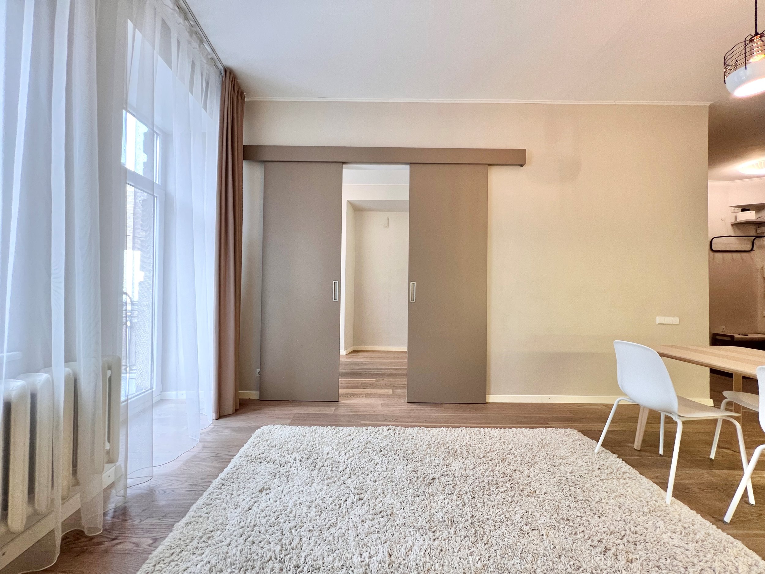 - Protingai išplanuotas butas: du atskiri kambariai ir svetainė.