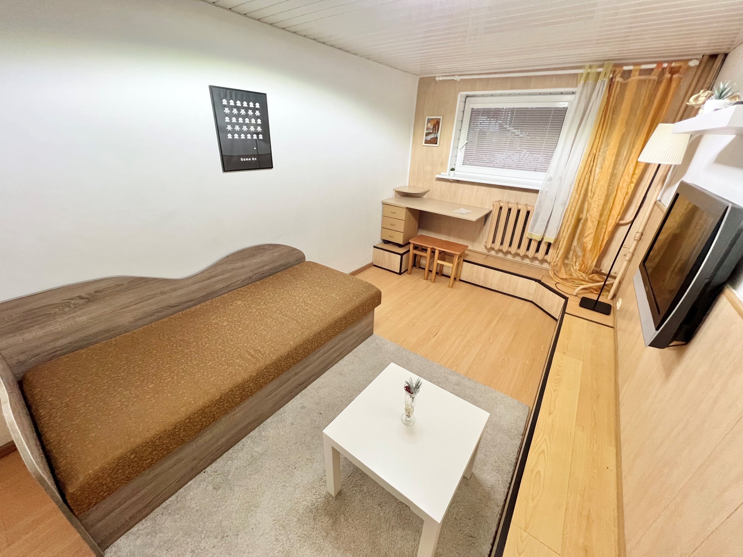 Išplanavimas:1 miegamasis kambarys, IZOLIUOTA virtuvė, vonios kambarys kartu su WC ! Bute yra viengulė lova.