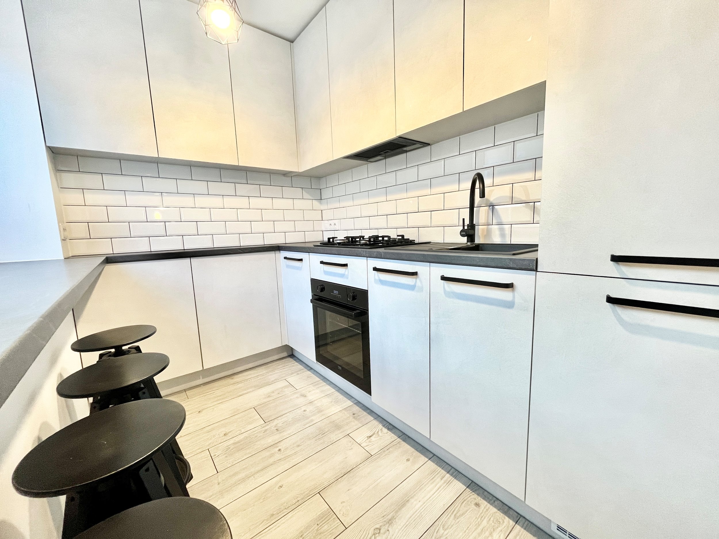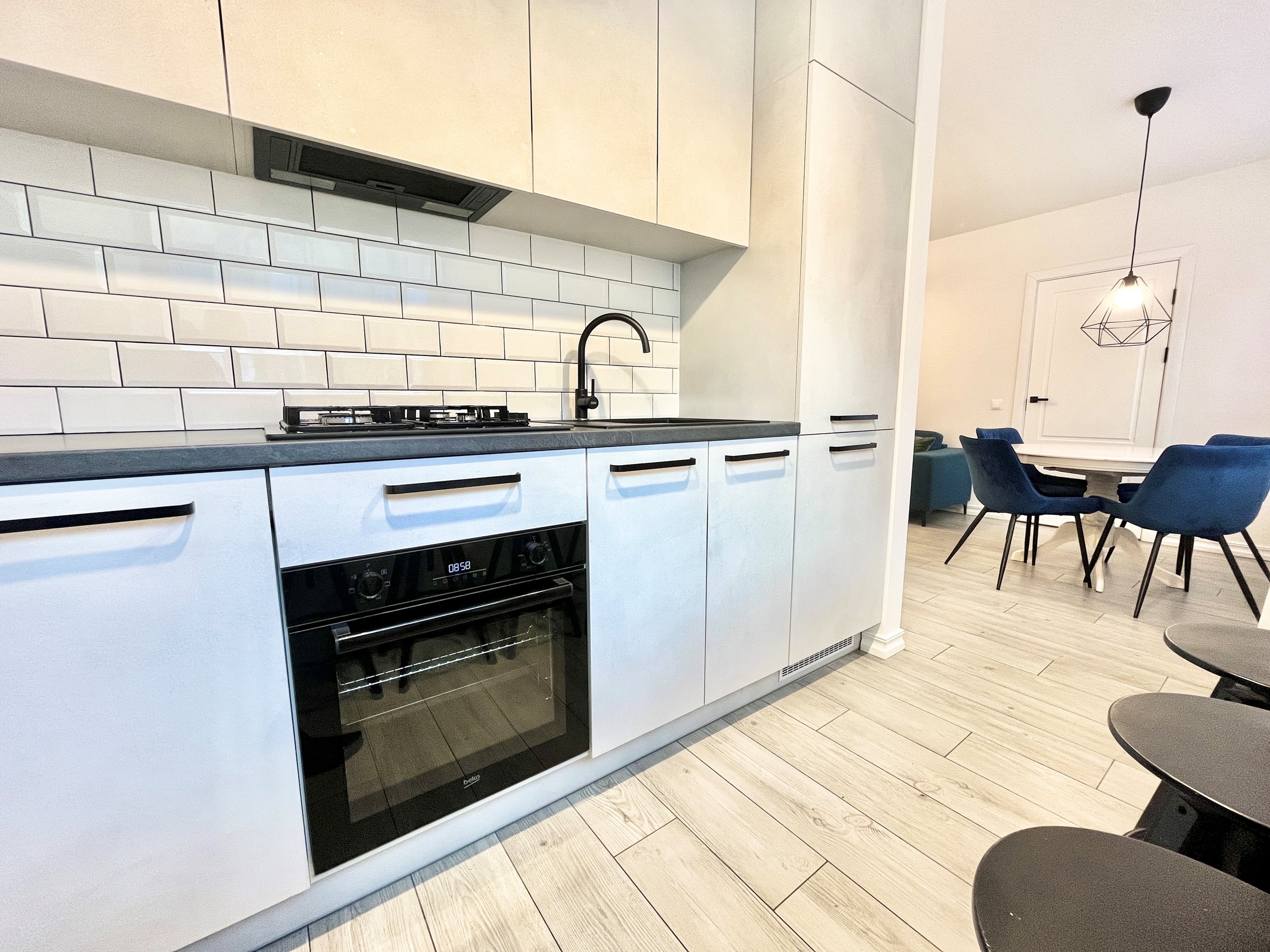 Virtuvėje - visa reikalinga buitinė technika: orkaitė, indaplovė, kaitlentė, gartraukis